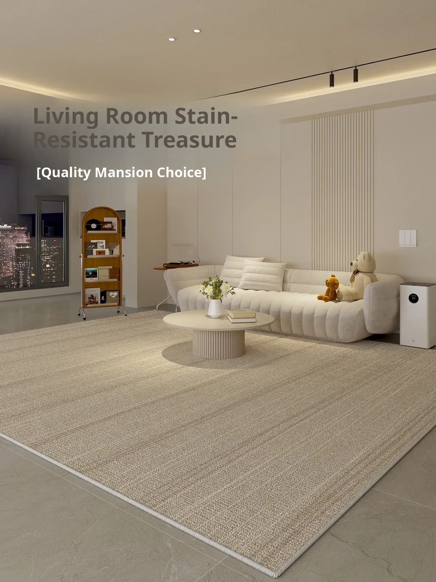 【15% Off with National Subsidy】Stylish Waterproof Living Room Carpet - Easy-to-Clean Cream-Colored Modern Minimalist Area Rug for Bedroom and Home Decor