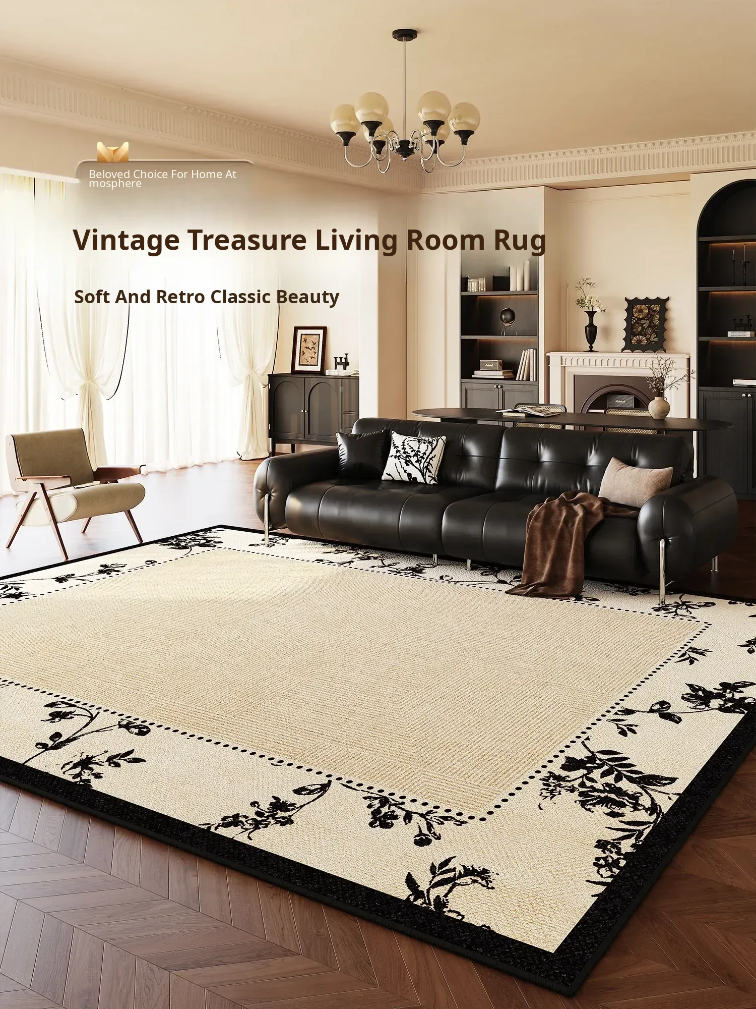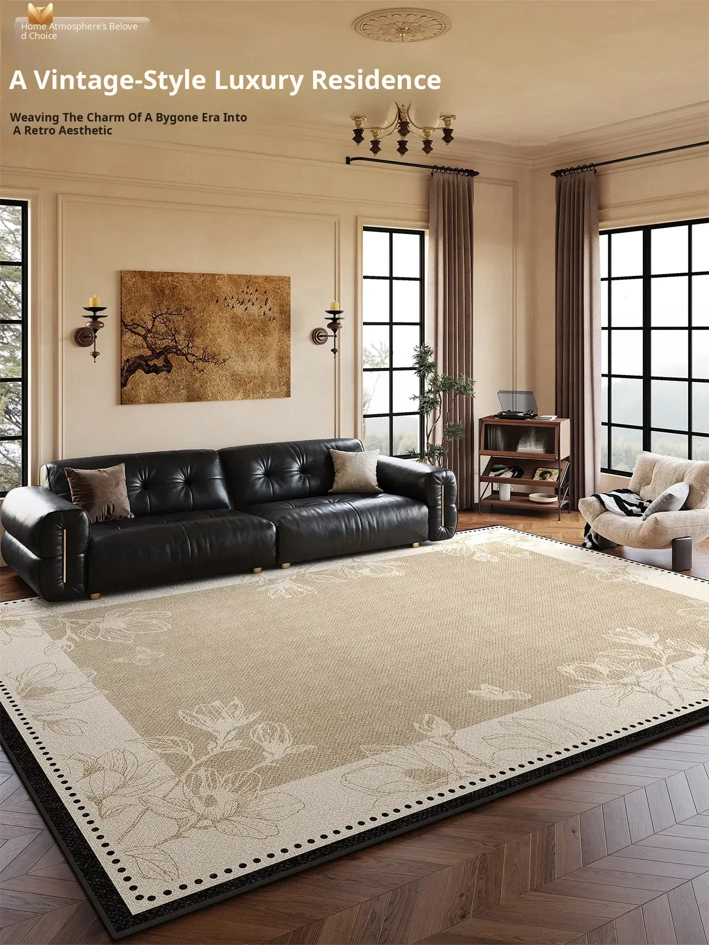 2025 New Vintage Style Living Room Carpet - Washable, Faux Cashmere Bedside Rug for Bedroom, Large Area Coverage, No Cleaning Required