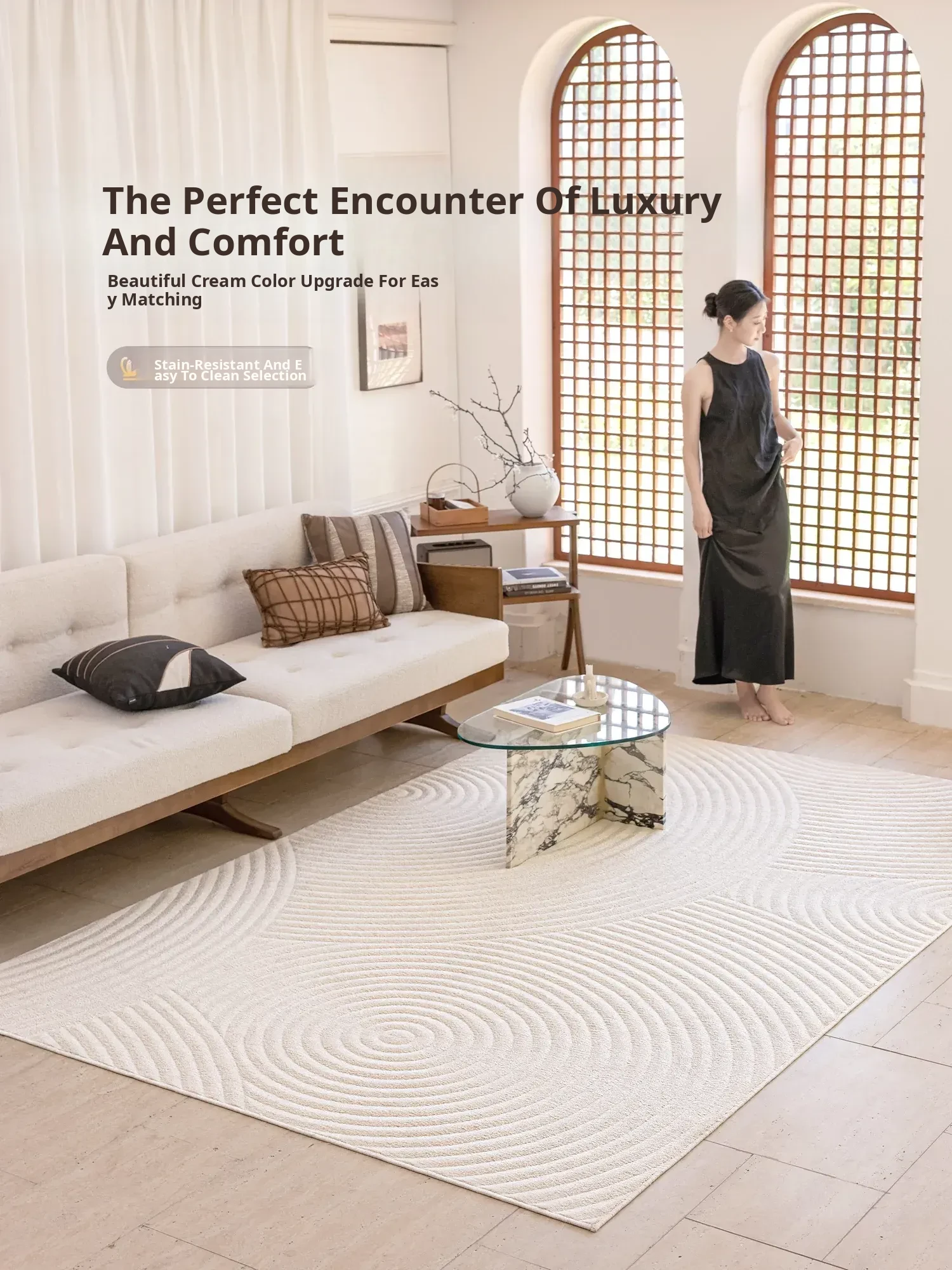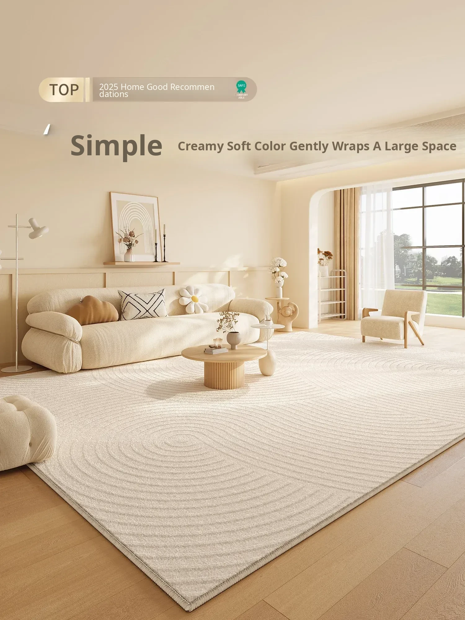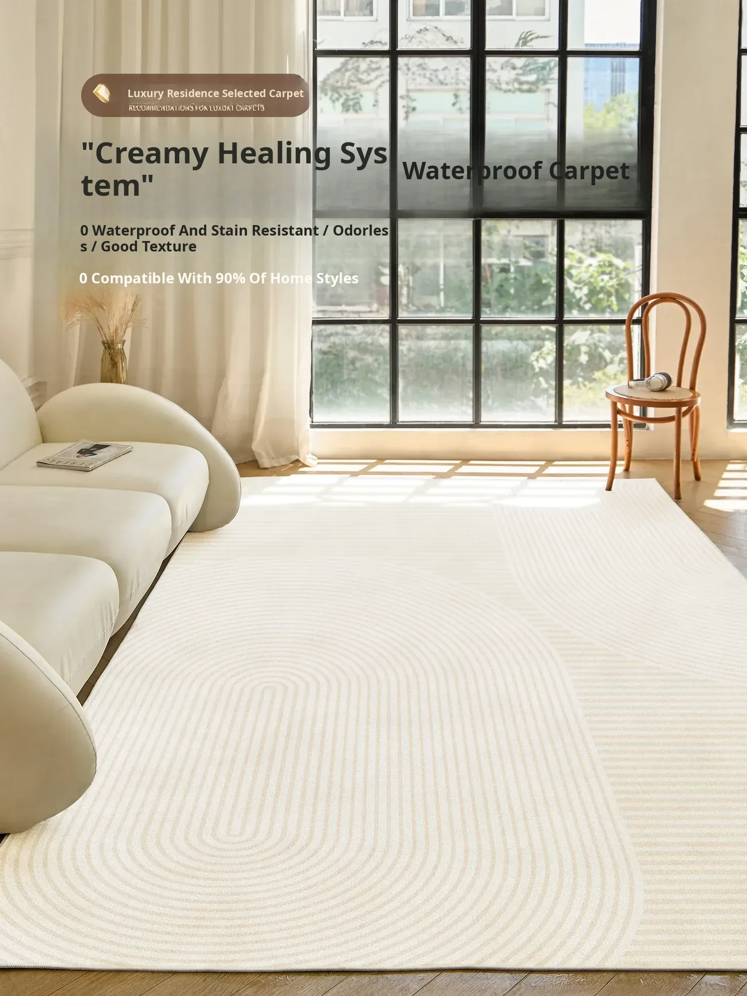 2025 New Release: Wash-Free, Wipeable French Cream Style Carpet for Living Room - Waterproof and Stain-Resistant, Perfect for Home Luxury in Bedroom and Beyond!