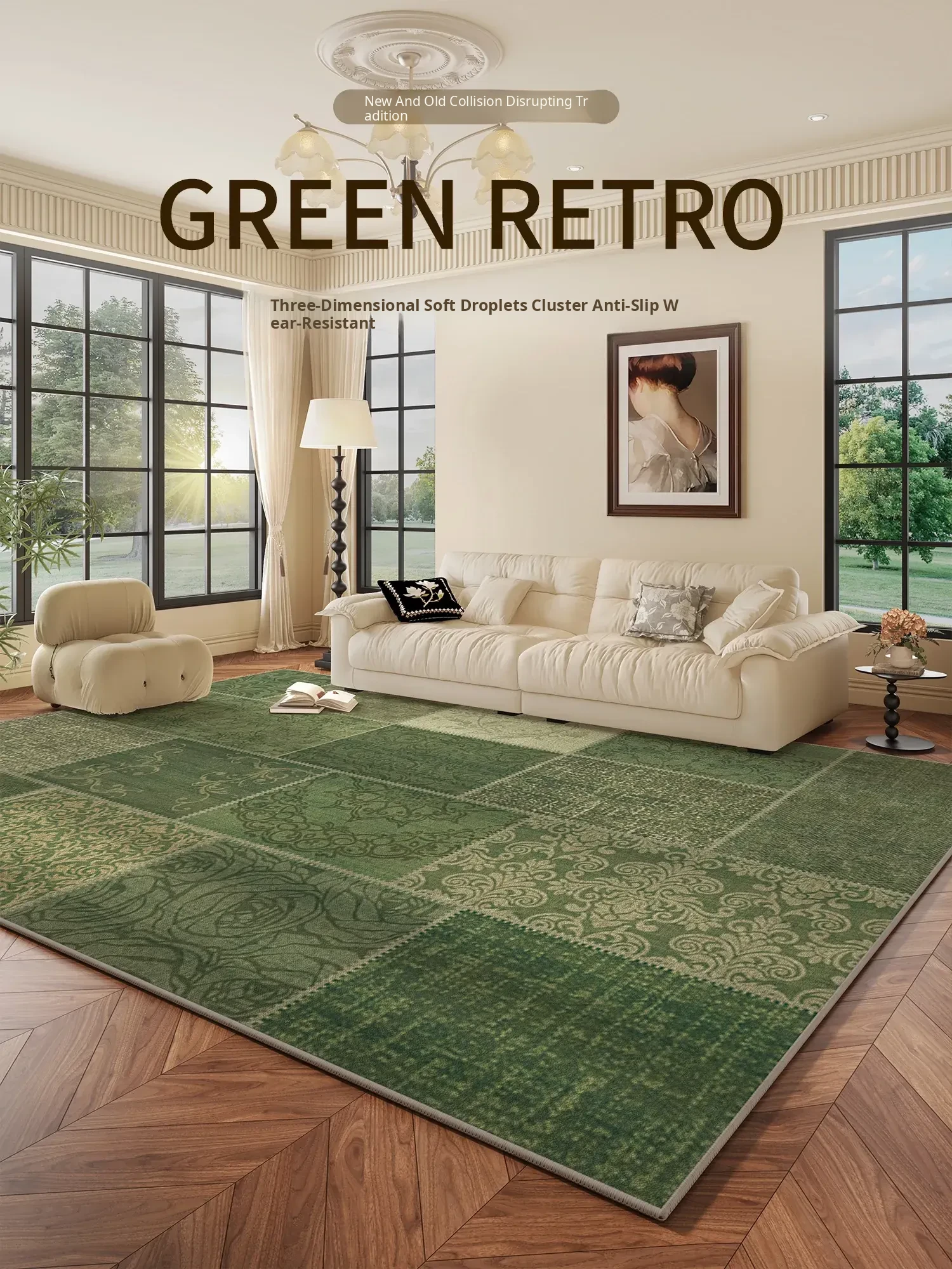 Vintage American Style Green Carpet for Living Room - Waterproof, Easy-Clean, Non-Slip Area Rug for Sofa and Coffee Table - Perfect for Bedroom and Home Décor