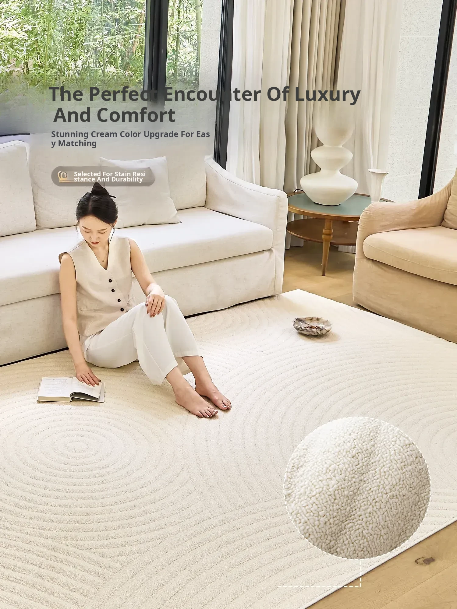 2025 New Creamy Style Area Rug for Living Room – Luxurious, Easy-Care, Washable, Non-Slip, and Durable Sofa Mat