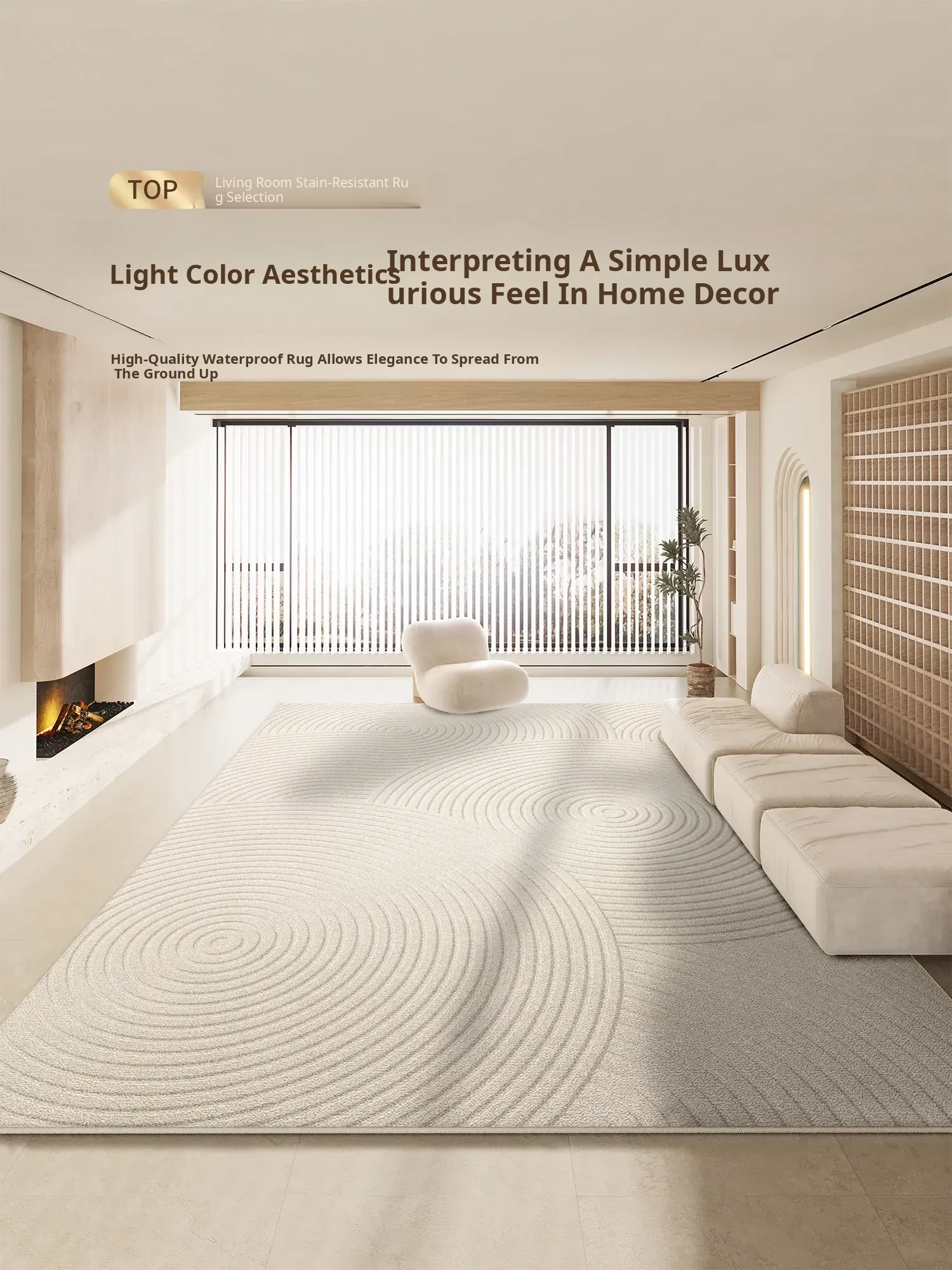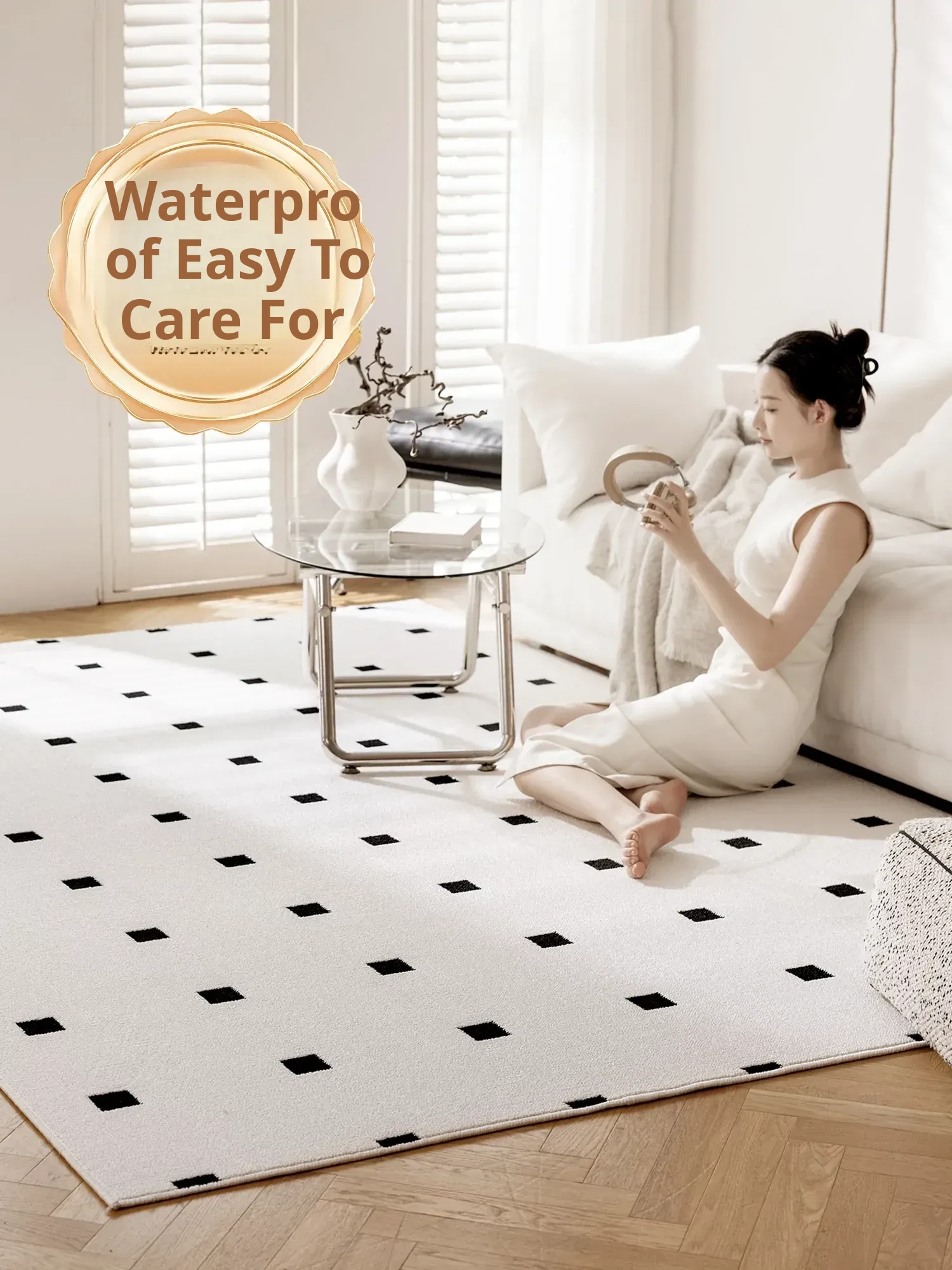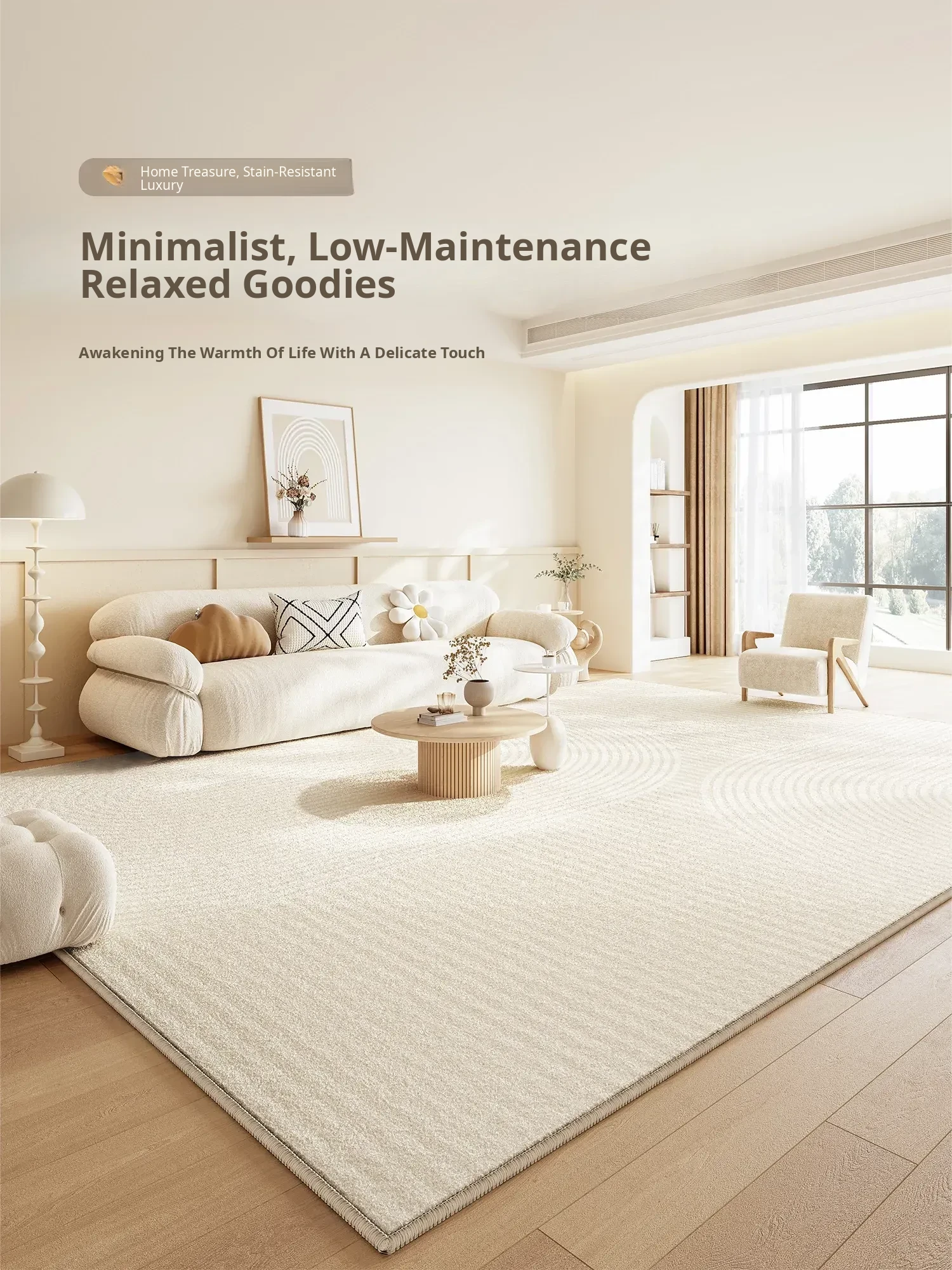 Waterproof & Stain-Resistant Carpet for Living Room - Modern Cream Aesthetic, Luxury, Easy-Clean, 2025 New Tea Table Mat, Dirt-Resistant Design