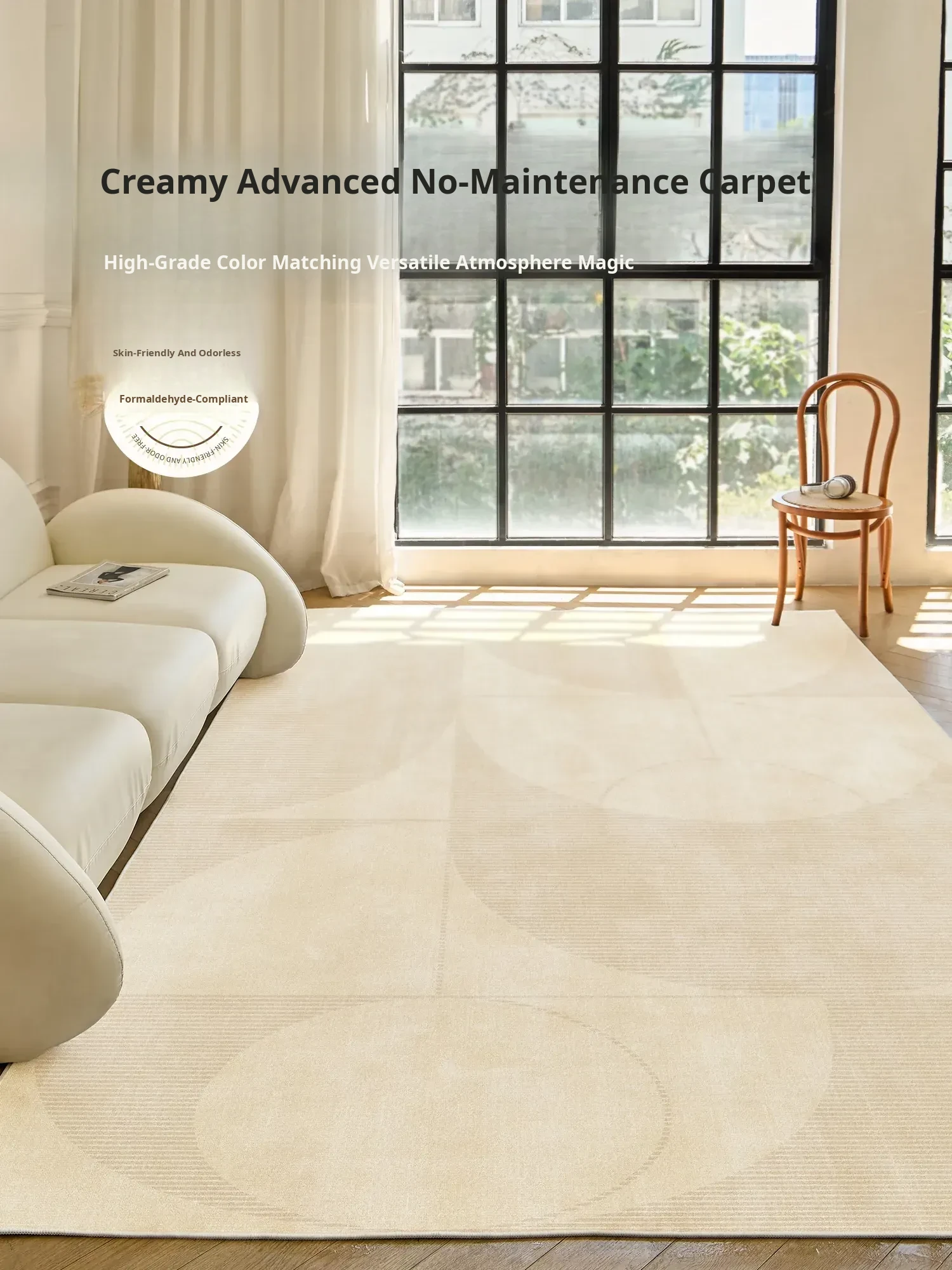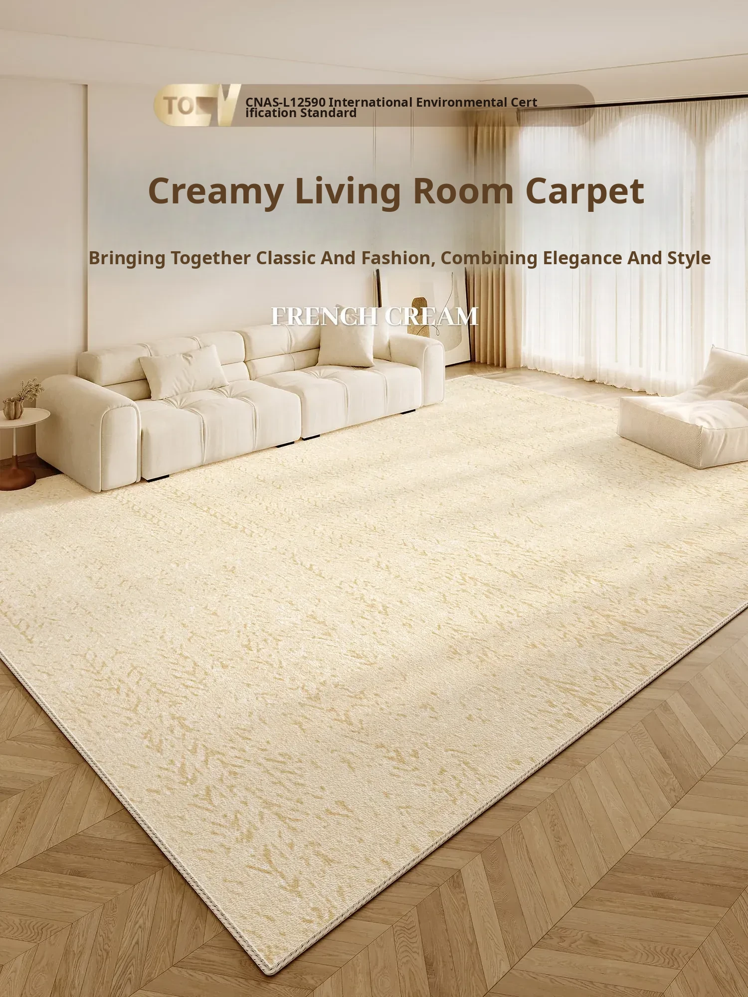 2025 New Luxury Living Room Carpet - Soft Cream Style Full Coverage Non-Slip Waterproof and Stain-Resistant Area Rug for Sofa