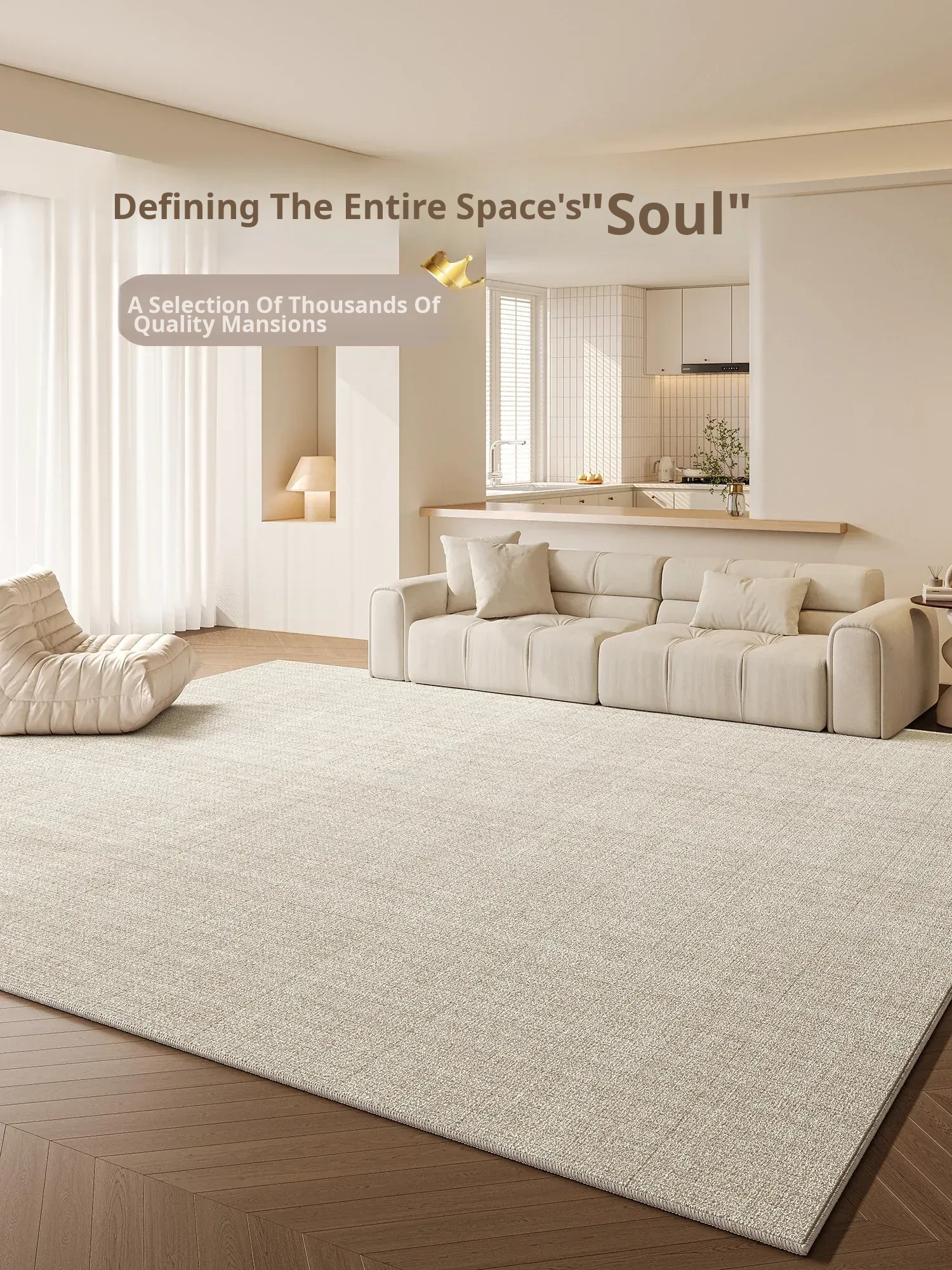 2026 New Cream-Style Luxury Living Room Carpet - Waterproof, Stain-Resistant, and Easy-to-Clean Diatom Mud Fiber Area Rug for Bedroom