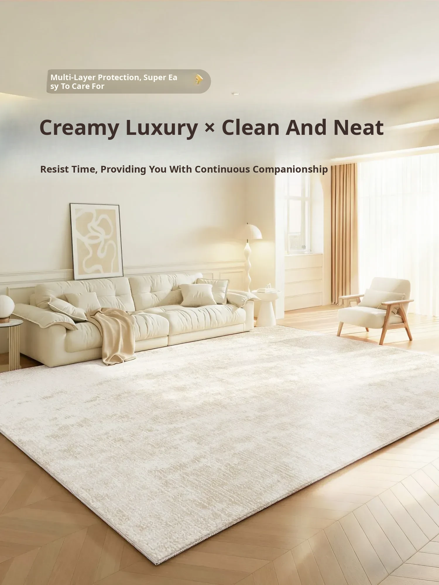Creamy Style 2026 New Luxury Large Area Waterproof and Easy-Clean Living Room Carpet - Perfect for Your Bedroom!