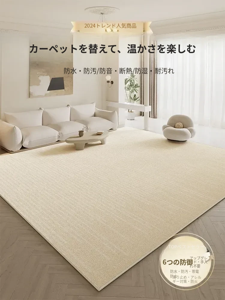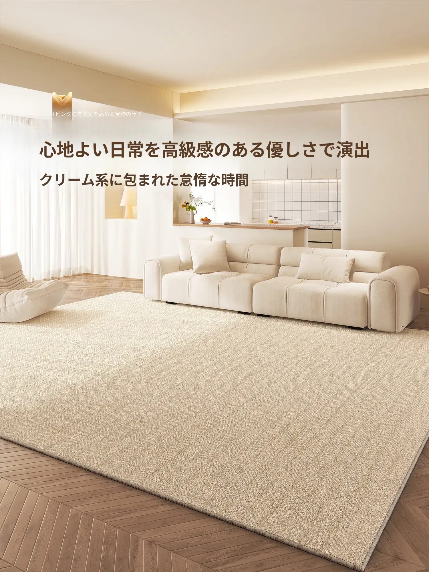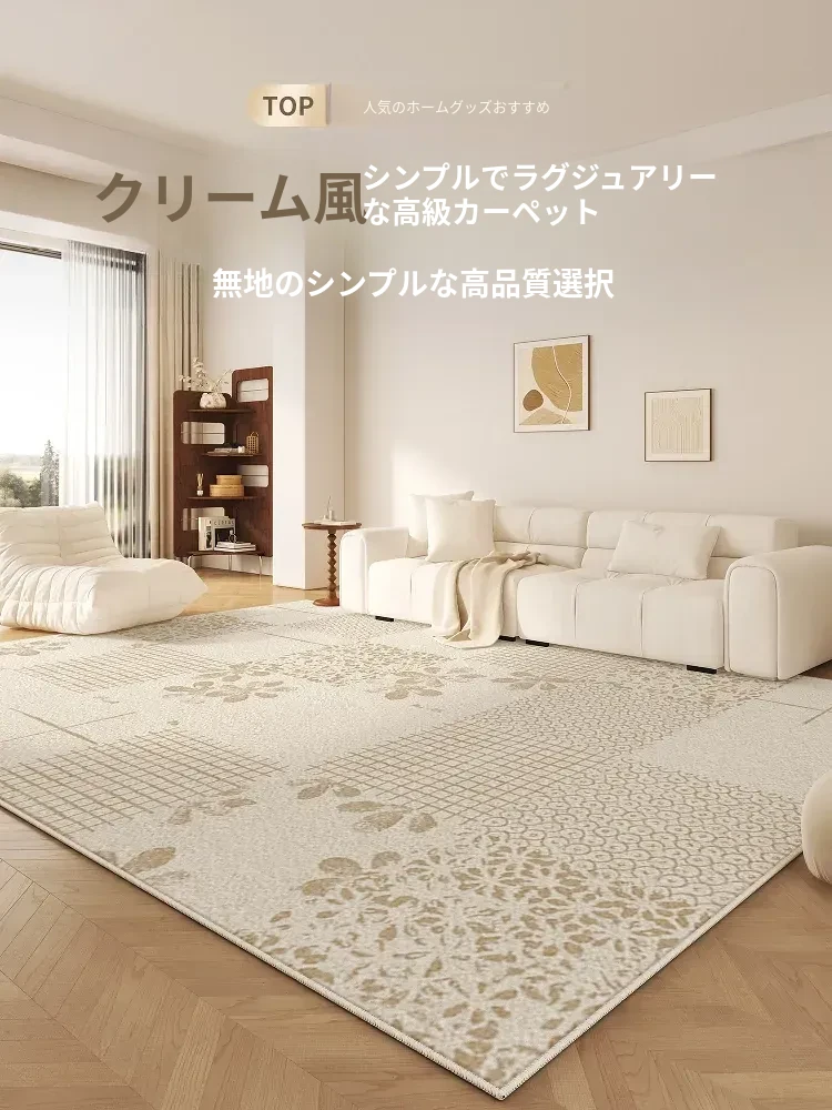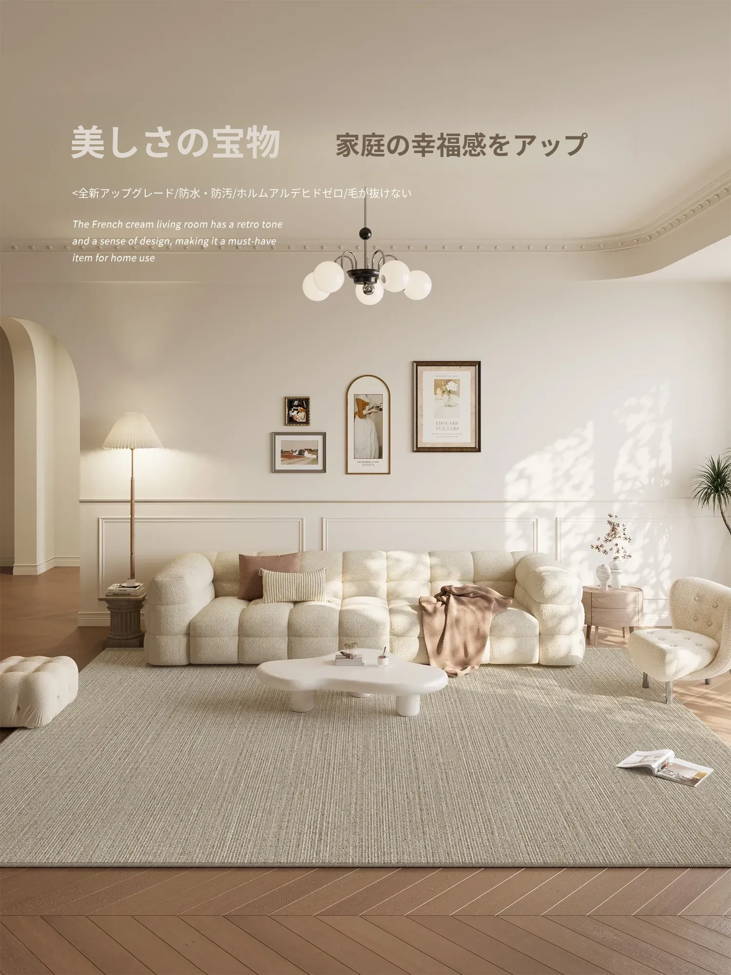 フランス風クリーム色リビングカーペット2025新作!シンプルで高級感漂う防水・防汚仕様、洗わずに使える便利なカーペットで、快適な家族の時間を演出します。