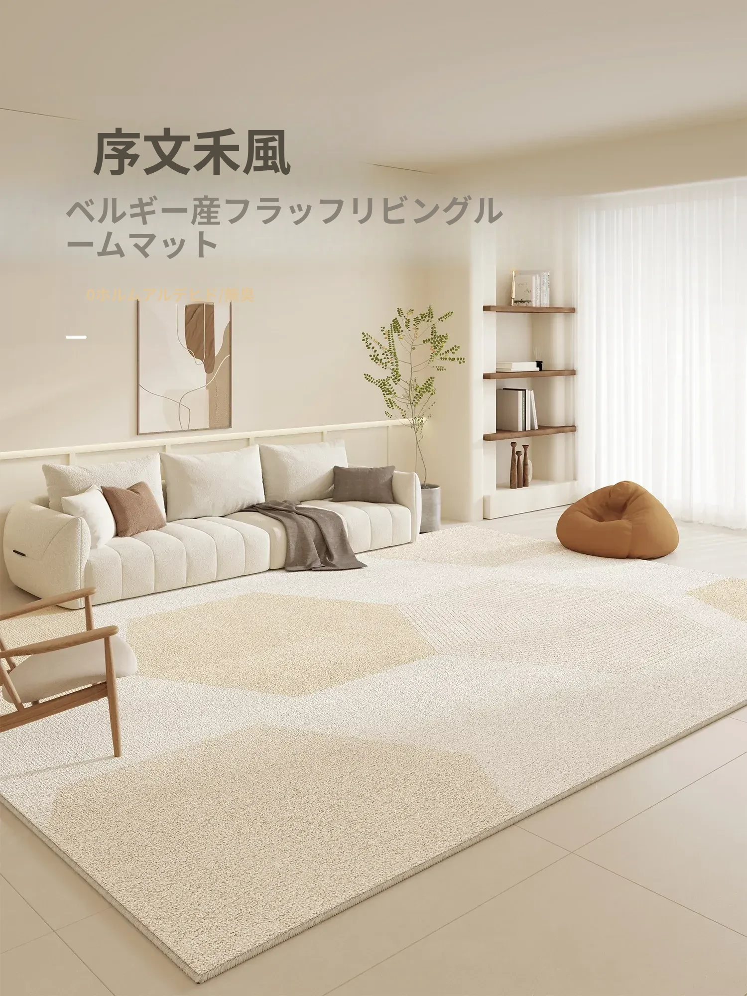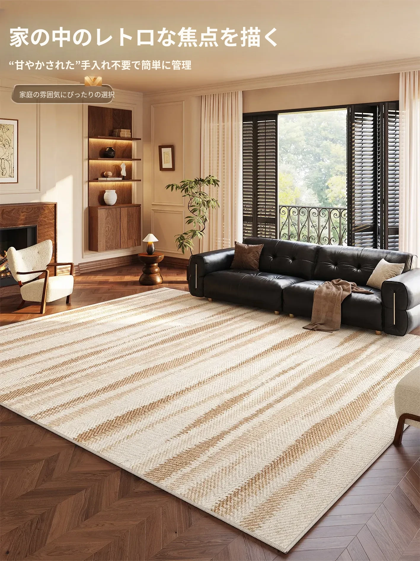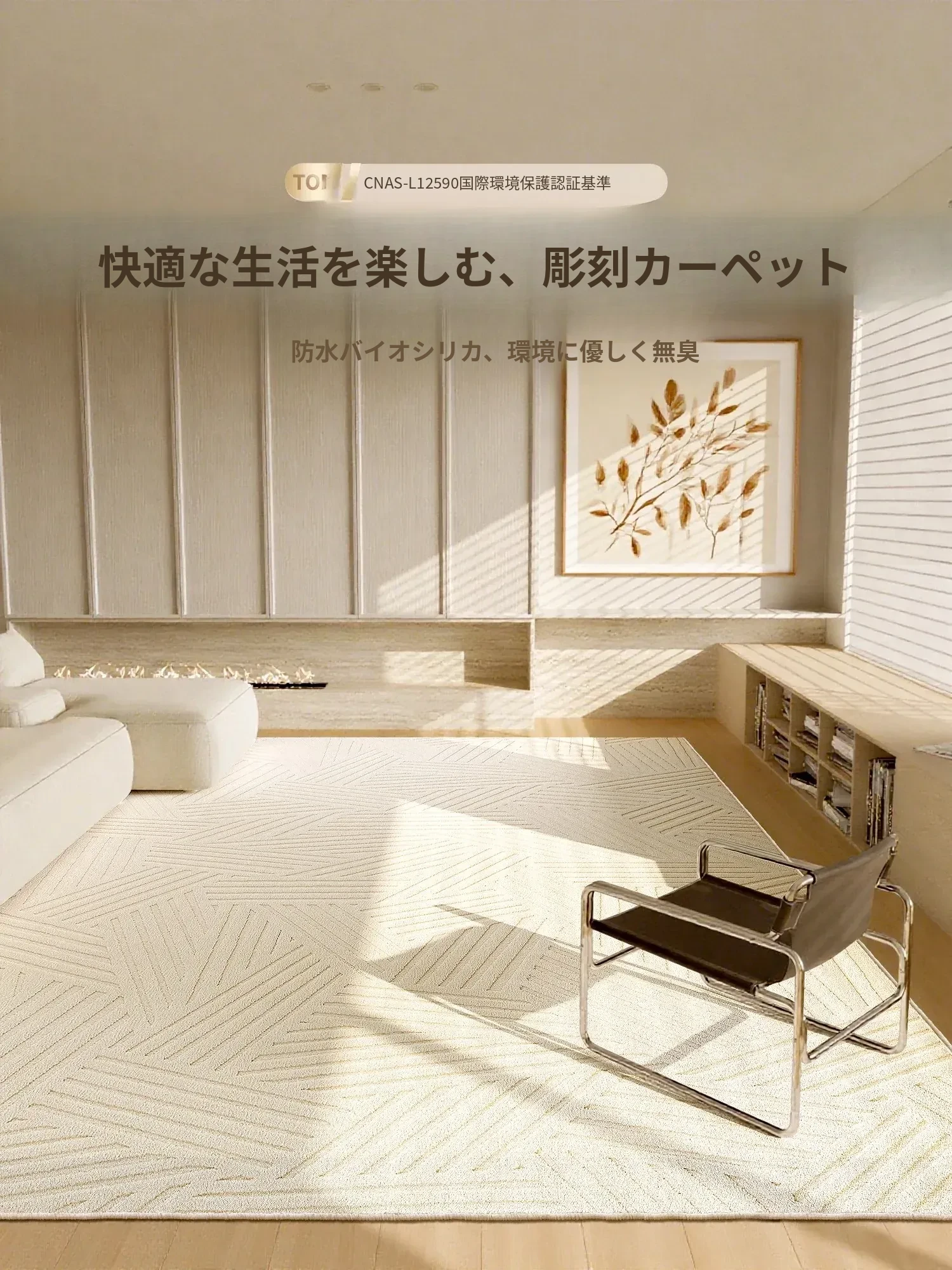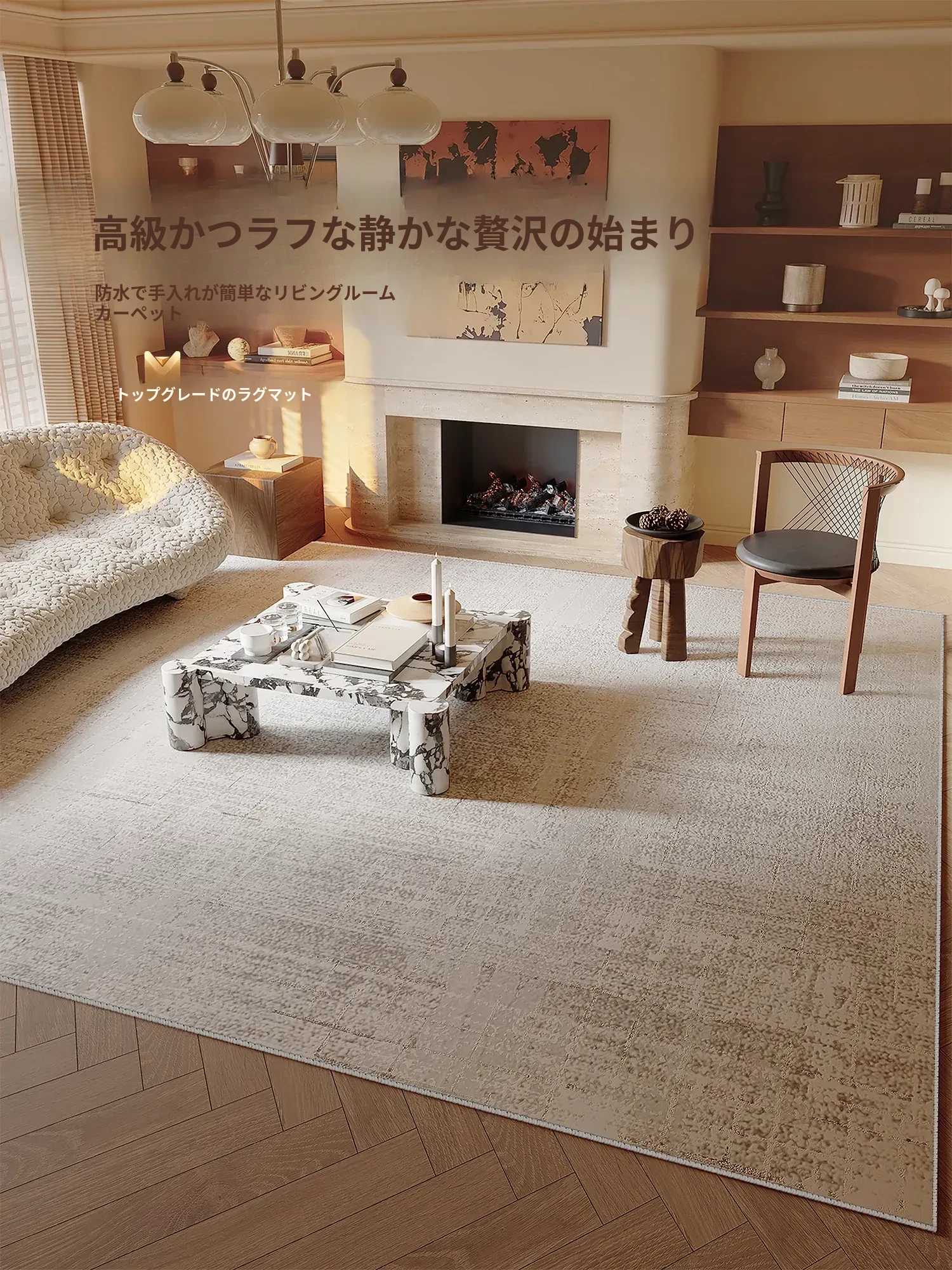 フランス風クリーム色リビングカーペット2025新作!シンプルで高級感漂う防水・防汚仕様、洗わずに使える便利なカーペットで、快適な家族の時間を演出します。
