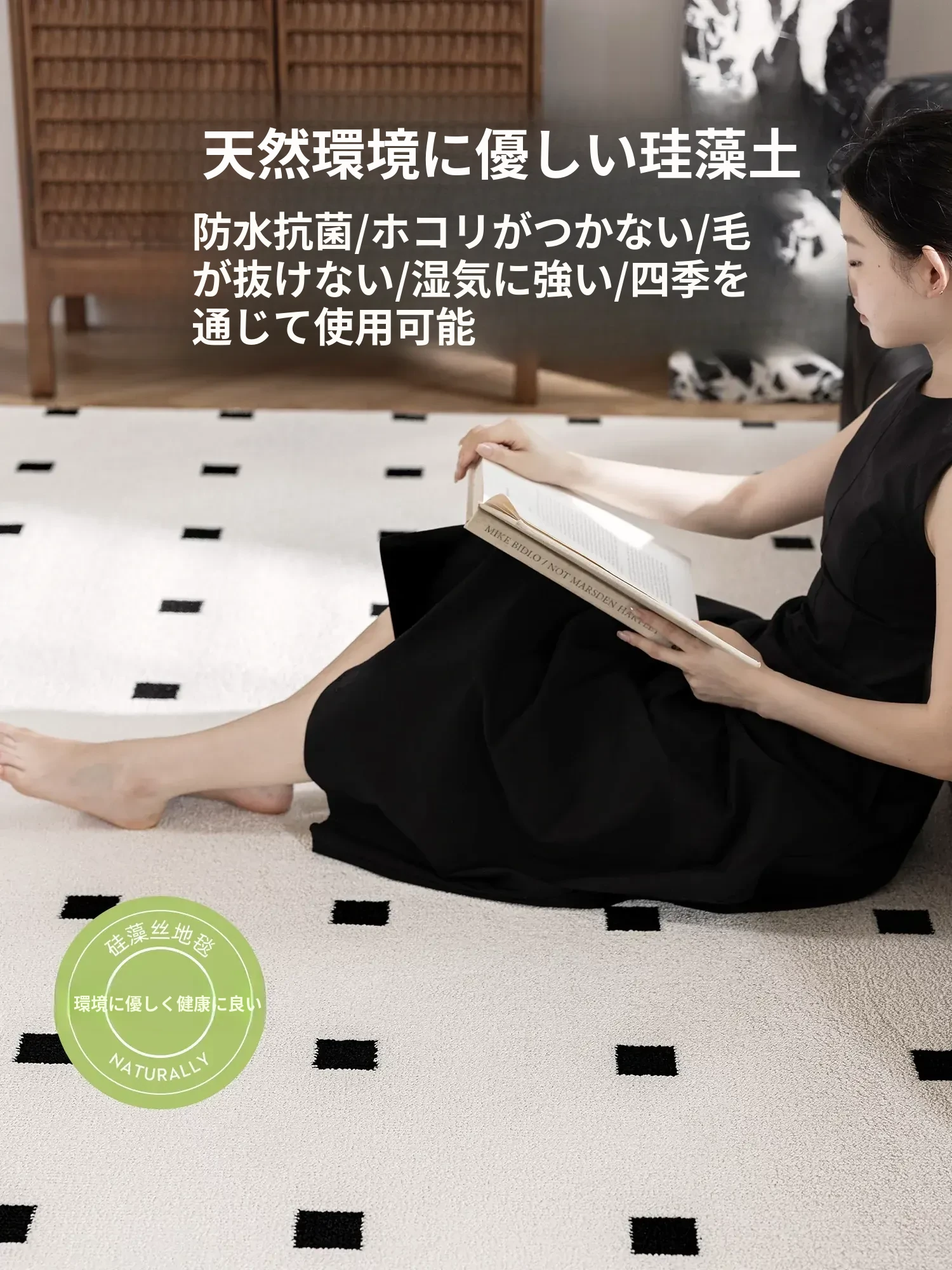 モダンな侘び寂びスタイルのリビングルームカーペット - 防水・汚れ防止、メンテナンス不要で手間いらず!耐磨耗性があり、簡単に拭き取れるので、ティーテーブルの下にぴったりな家庭用カーペットです。