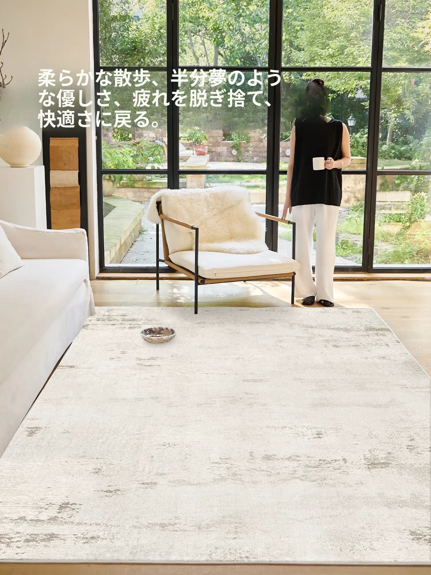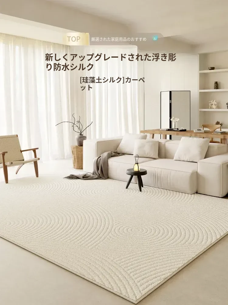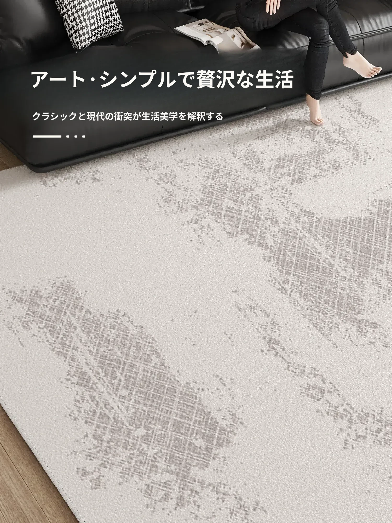 2025年新作!防水・お手入れ不要のデザイナーズラグ - シリカ繊維製、クリーミーな高級感。汚れに強く、簡単に拭き取れるから、あなたのリビングを美しく保つ!