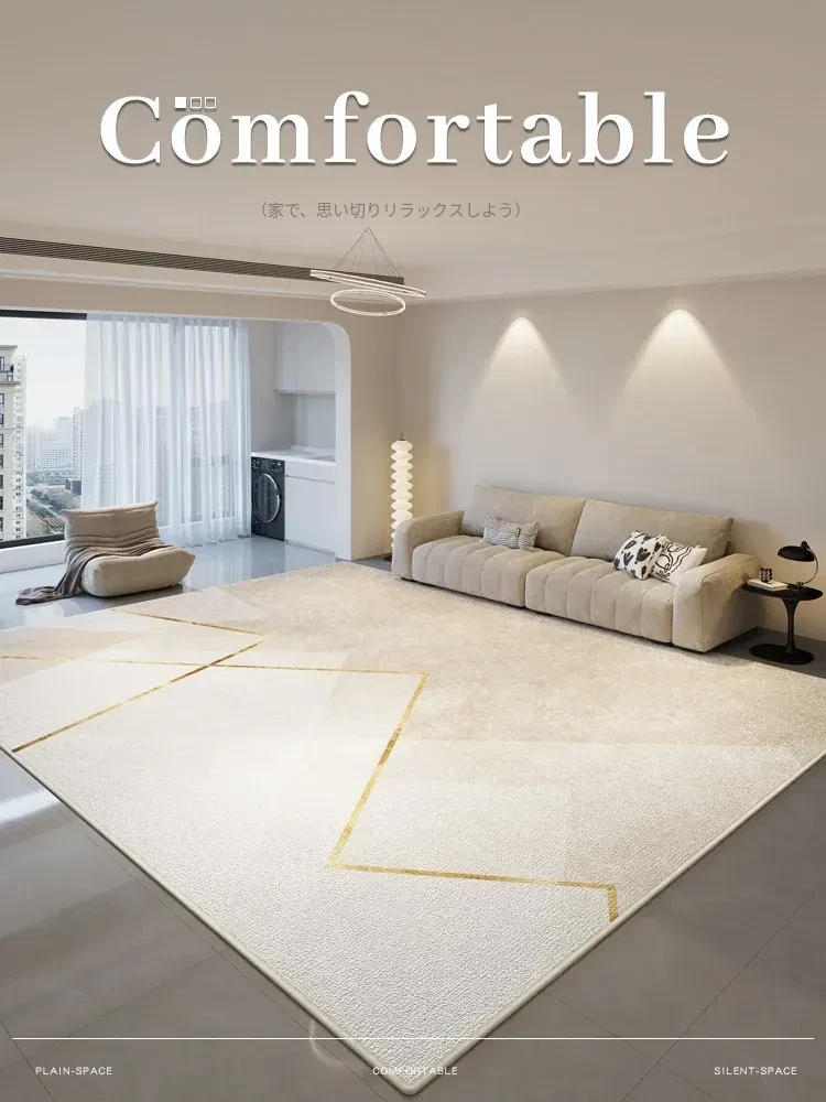 2025年新作!リビングルーム用クリーム風ラグ - お手入れ簡単、洗浄不要!大面積カバー、寝室にも最適な滑り止め・耐摩耗性マット。あなたの家をスタイリッシュに演出します!