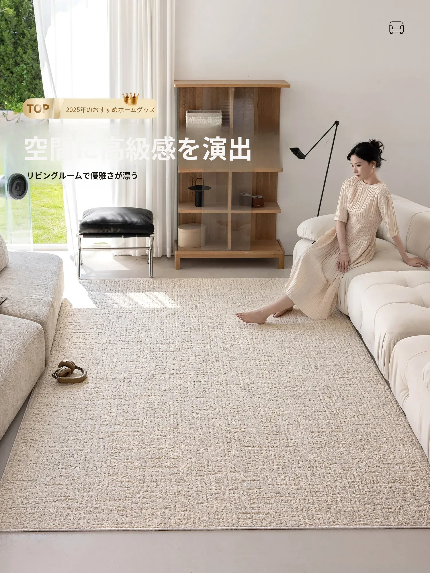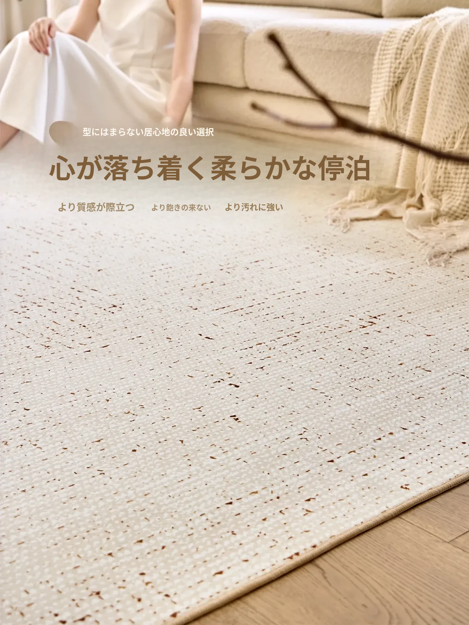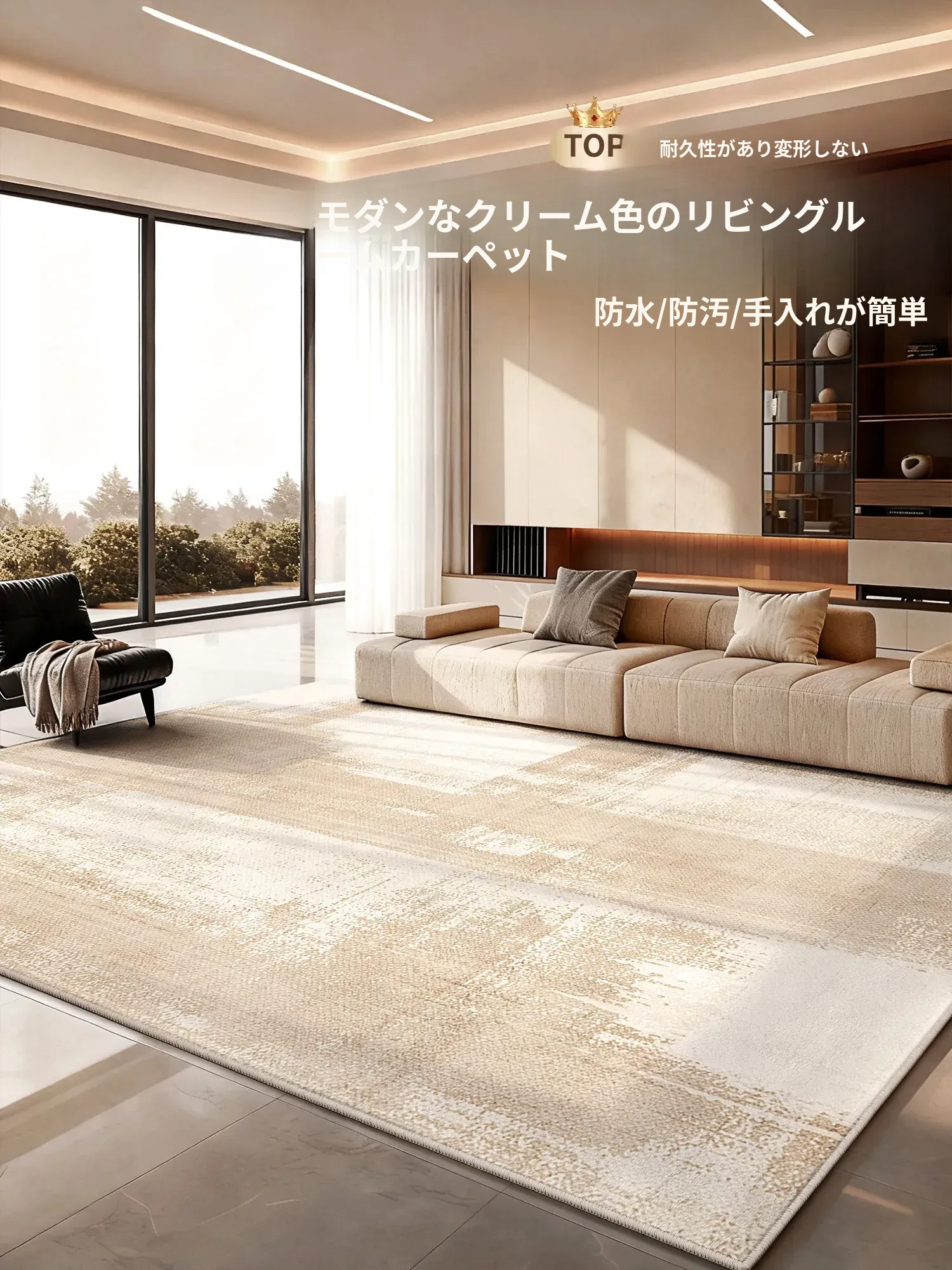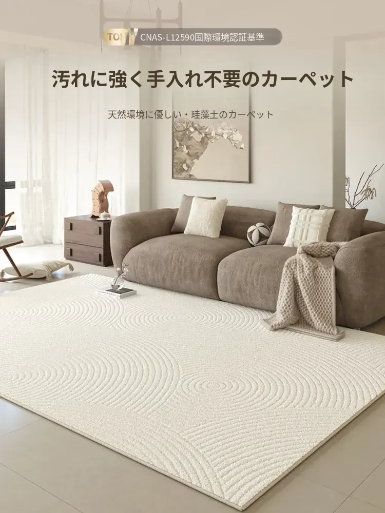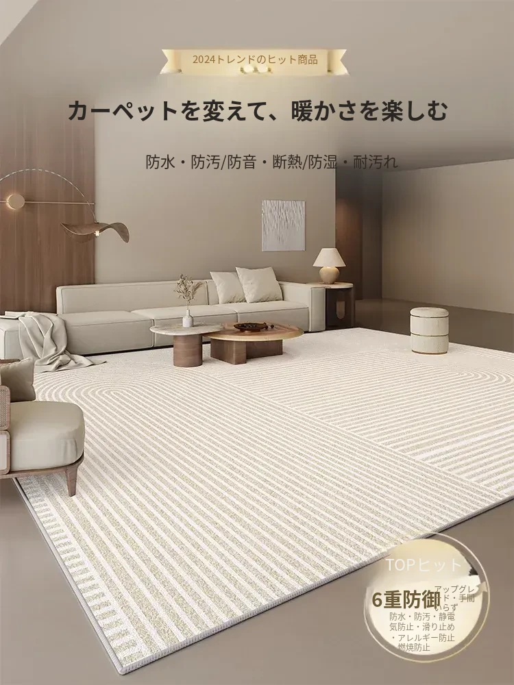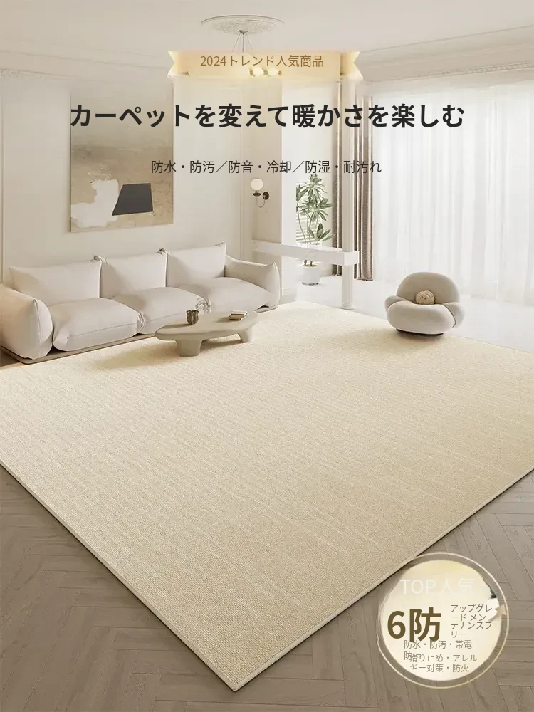 2025年新作!高級感あふれるクリーム風リビング用カーペット - 防水・防汚でお手入れ簡単、ソファと完璧にマッチ!快適な空間を演出します。
