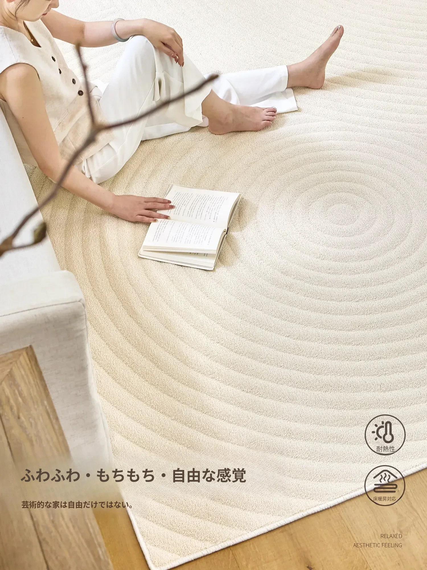 侘寂スタイルのクリームカラーラグ 2025年新作!リビングにぴったりのソファマット、軽やかで高級感あふれるデザイン。お手入れも簡単な家庭用マットで、寝室にも最適です。