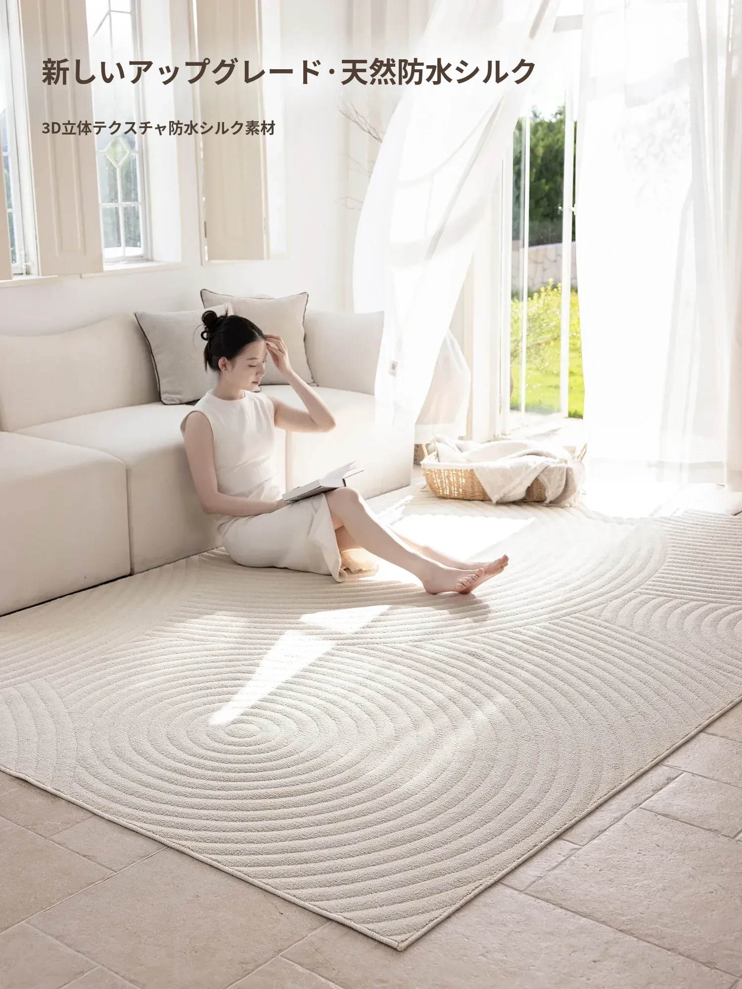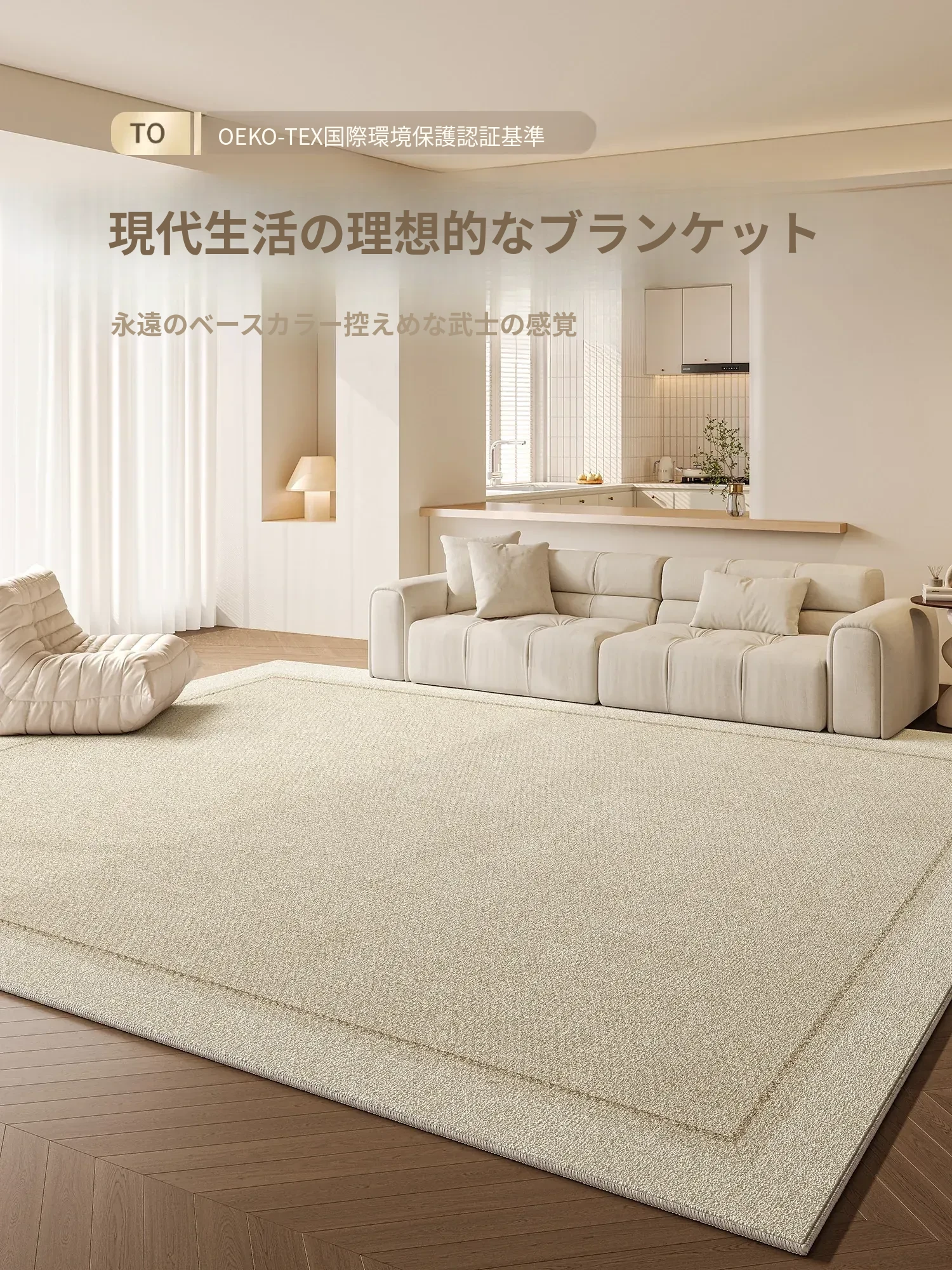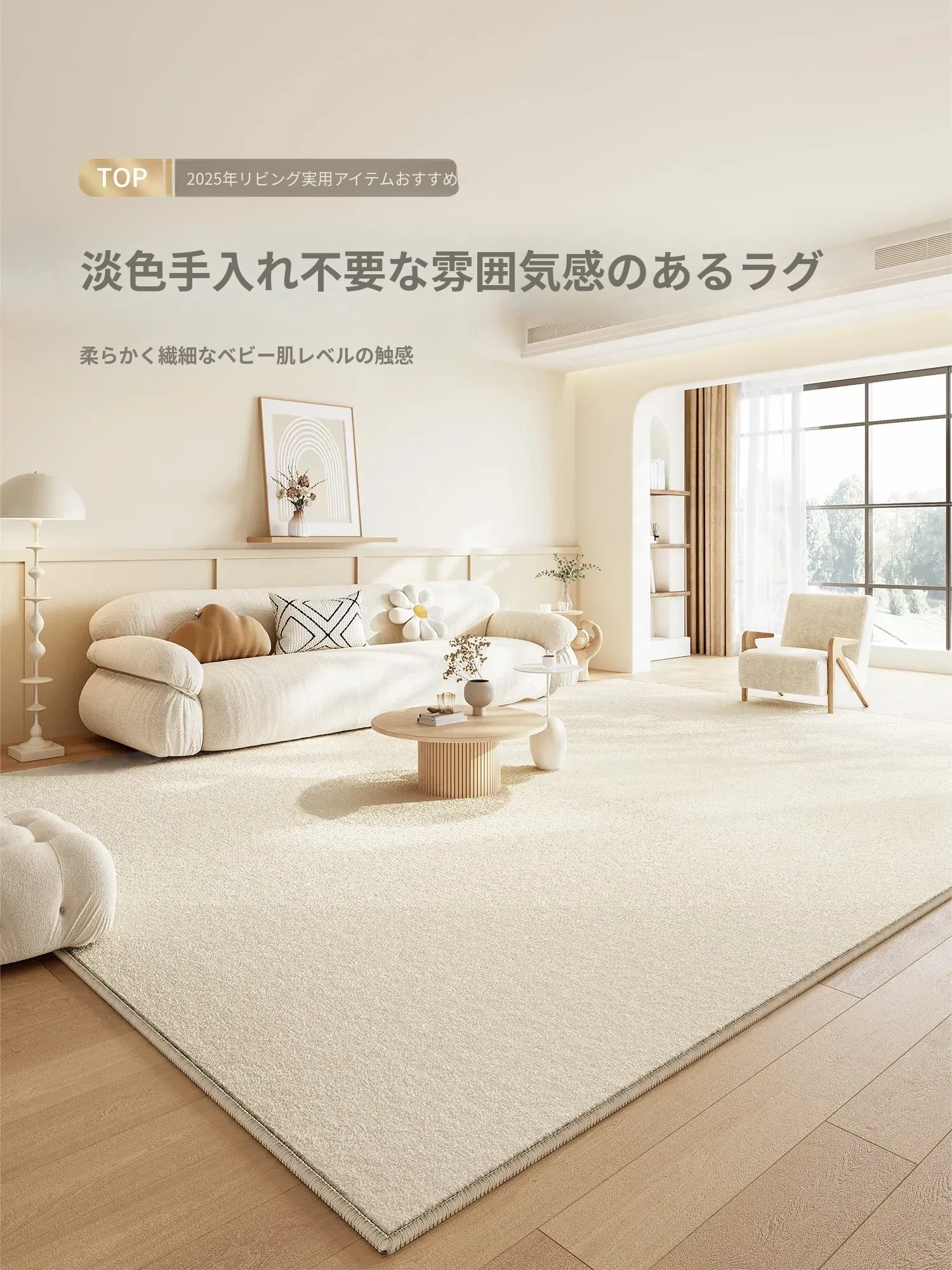 2025年新作!クリーミーカラーのリビングラグ、大面積カバーで高級感あふれる軽やかなデザイン。手洗い不要、防水・防汚機能付きでお手入れ簡単。あなたの空間を一新する、シンプルでスタイリッシュなアイテム!