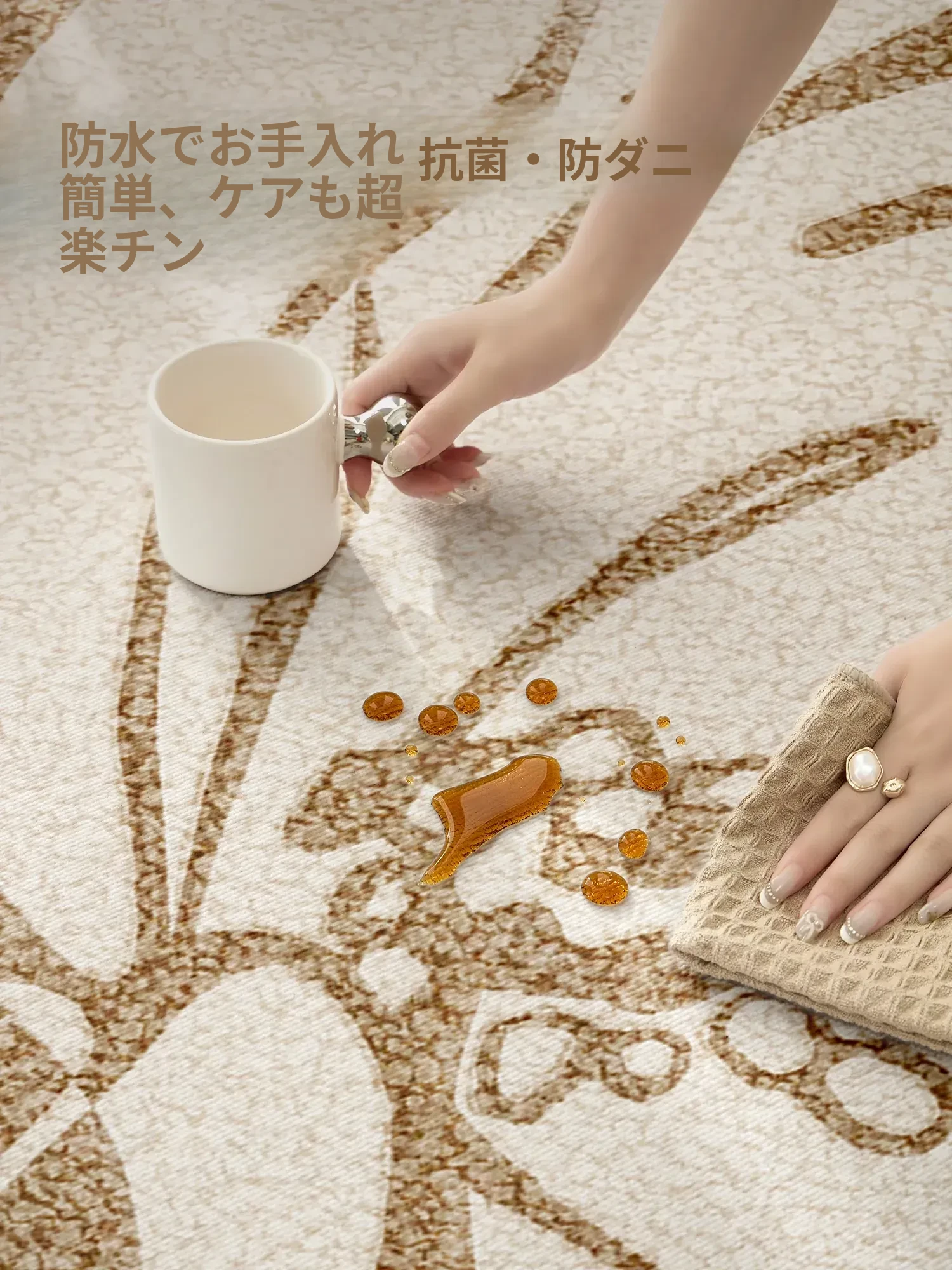 新作フレンチクリーム風ラグ|リビングに最適!お手入れ不要・防水・防汚の高級ソファマット|寝室にもぴったりなティーテーブルラグ