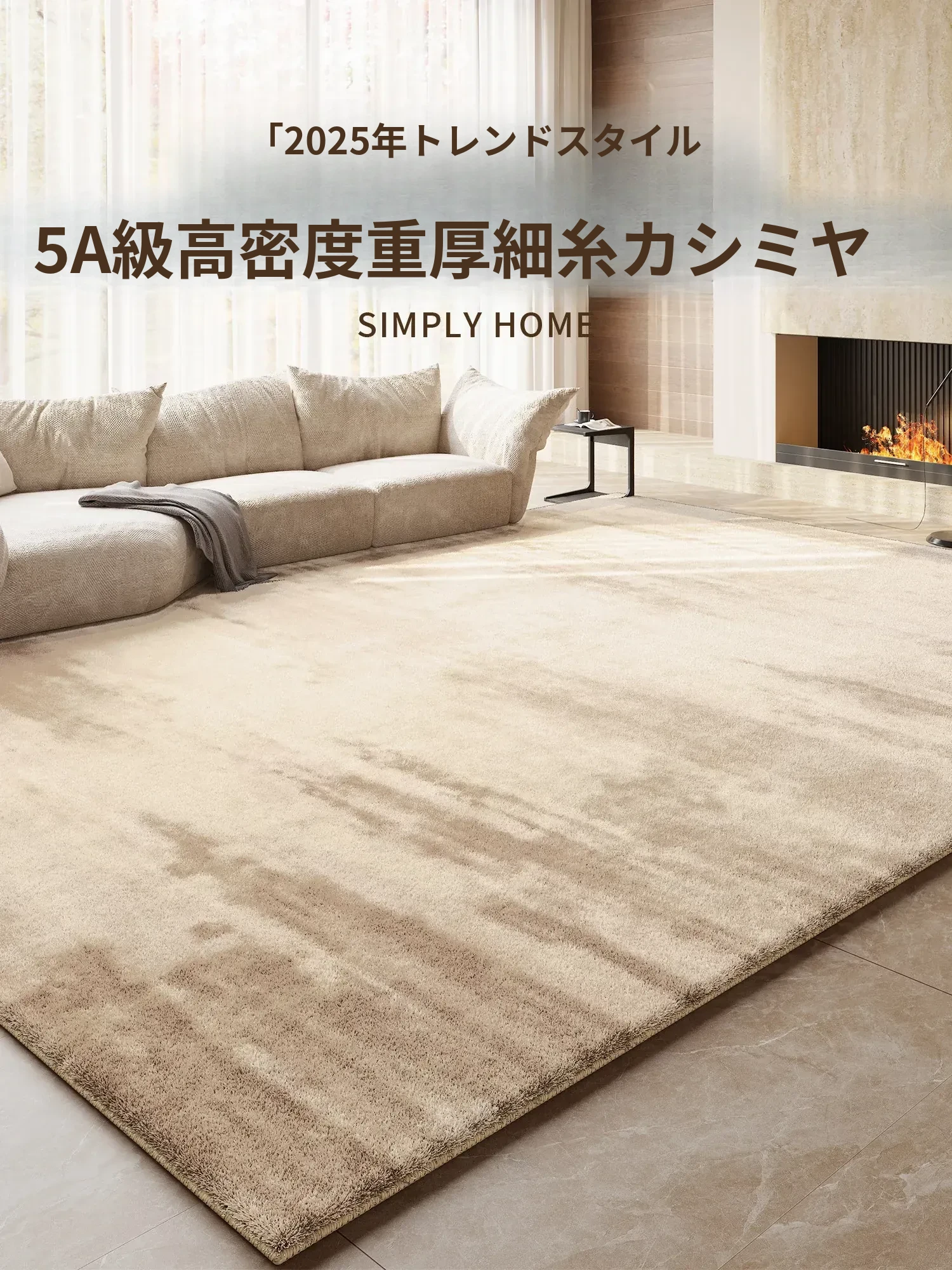 リビングルームにぴったり!2025年新作クリーム風デザインの高級カーペット。お手入れ簡単な撥水・防汚機能付き、寝室にも最適な広範囲カバー。快適な空間を演出します!