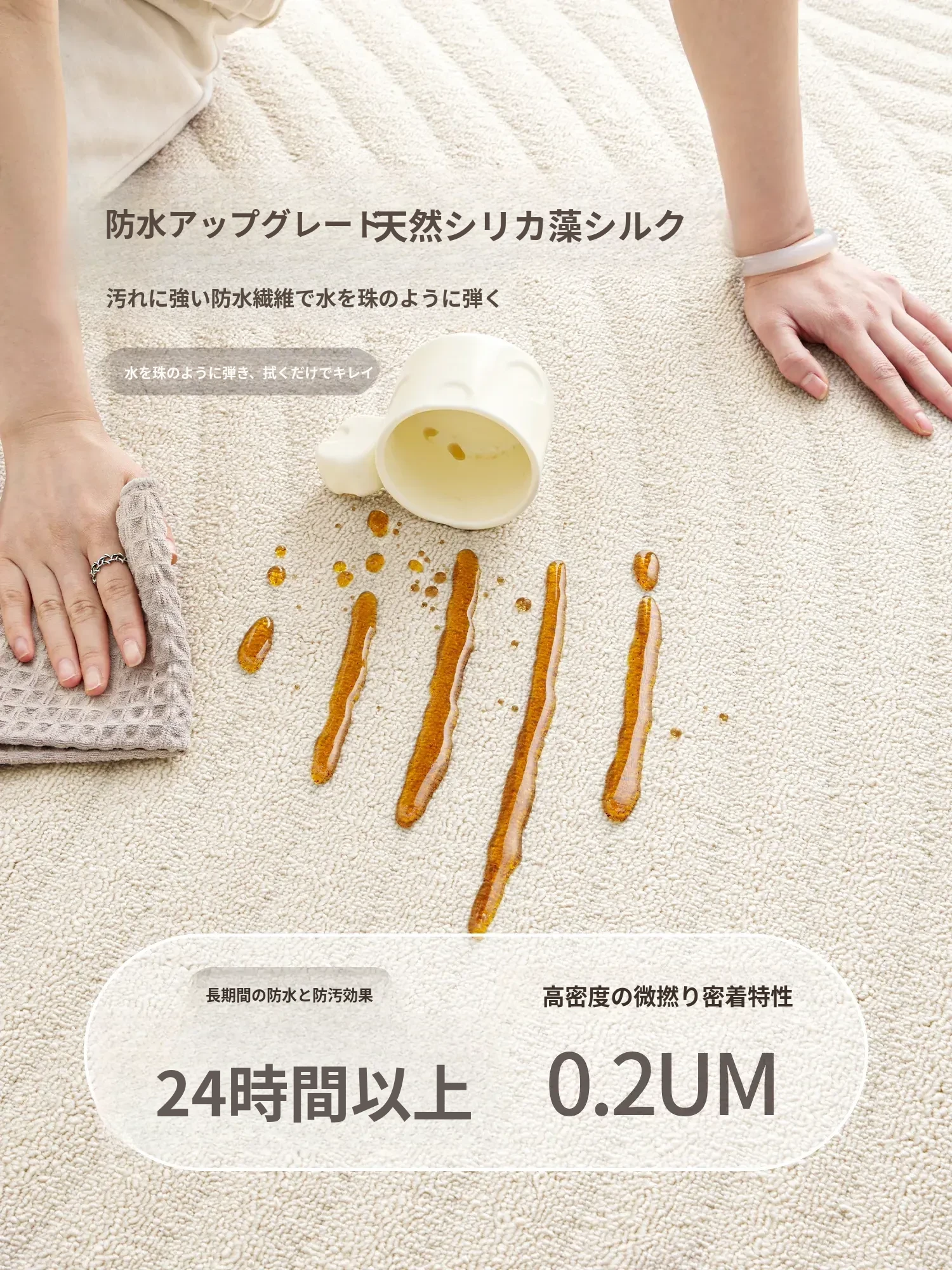 2025年新作!防水防污のシリカ繊維ラグ - 高級感あふれるクリームカラーのリビング用カーペット。ソファやテーブルにぴったり!洗浄不要で、いつでも清潔に保てます。あなたのインテリアを格上げする逸品です!