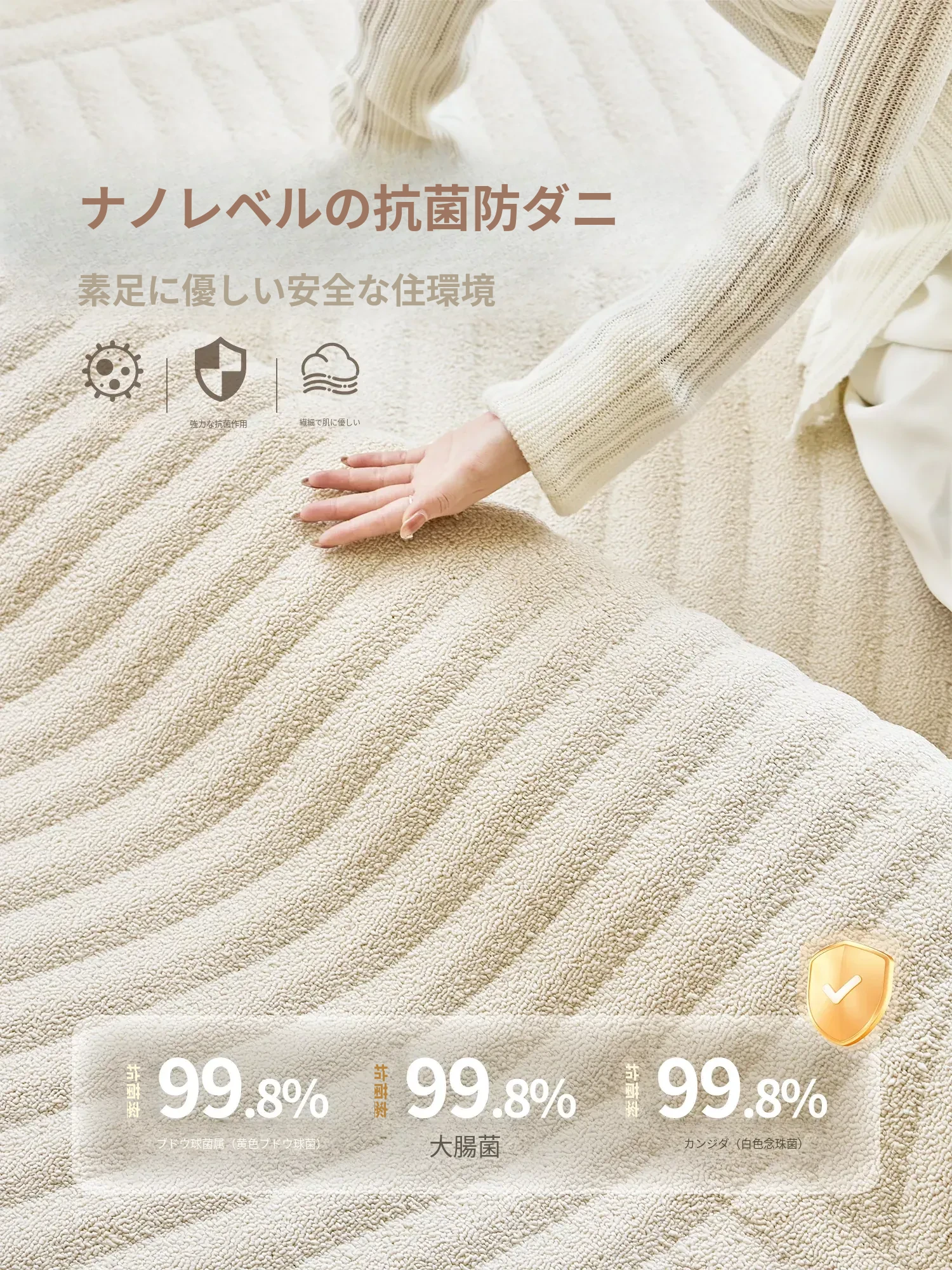 2026年新作!贅沢感あふれる防水・防汚リビングカーペット - クリーミーな風合いで、リビングや寝室、ベッドサイドにも最適!おしゃれで快適な空間を演出します。