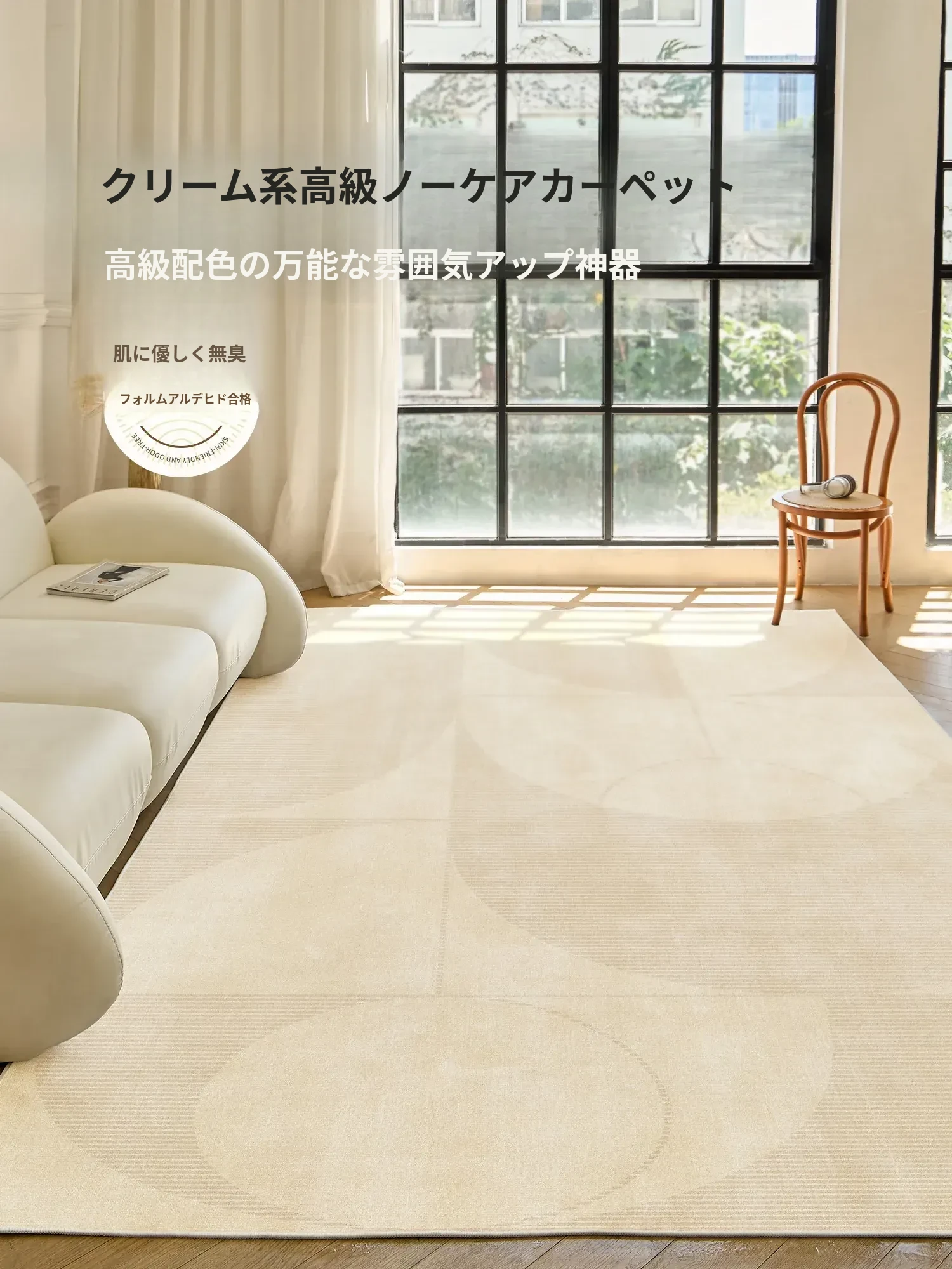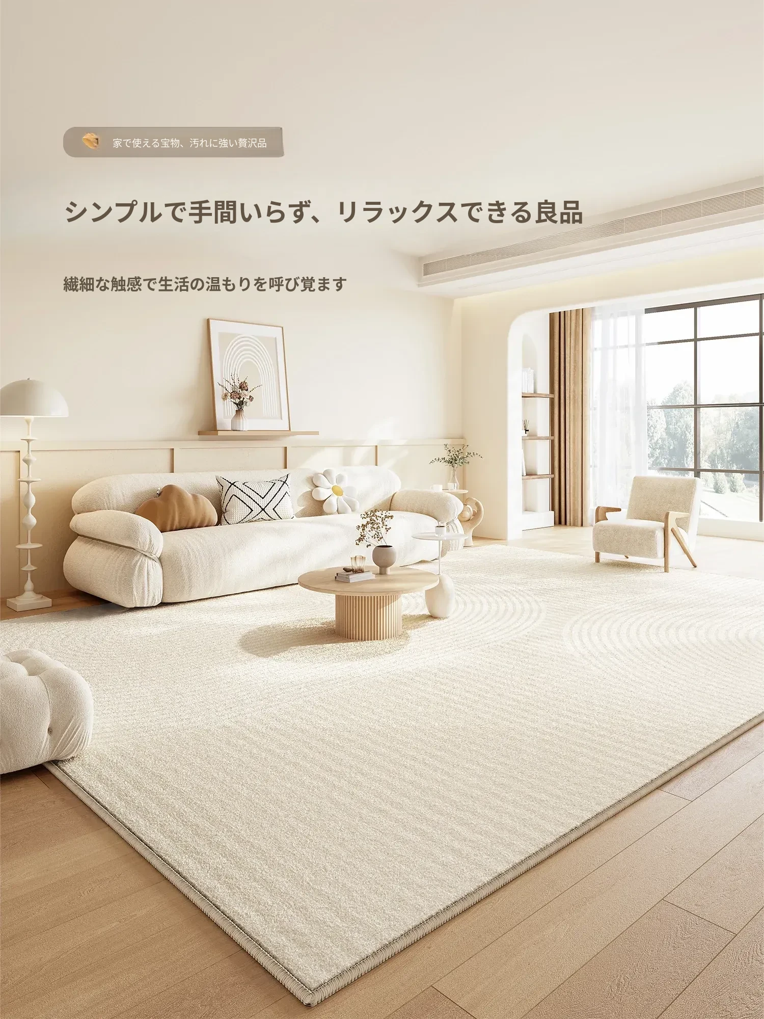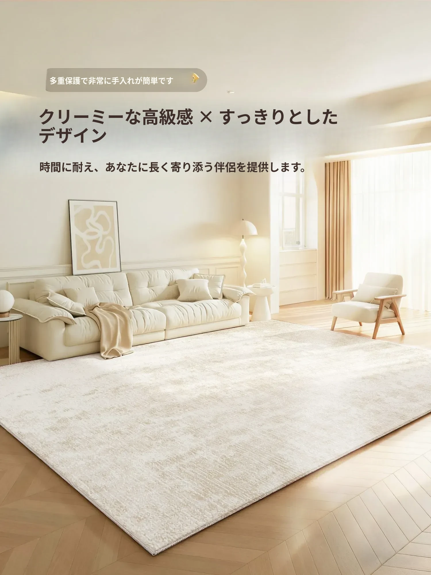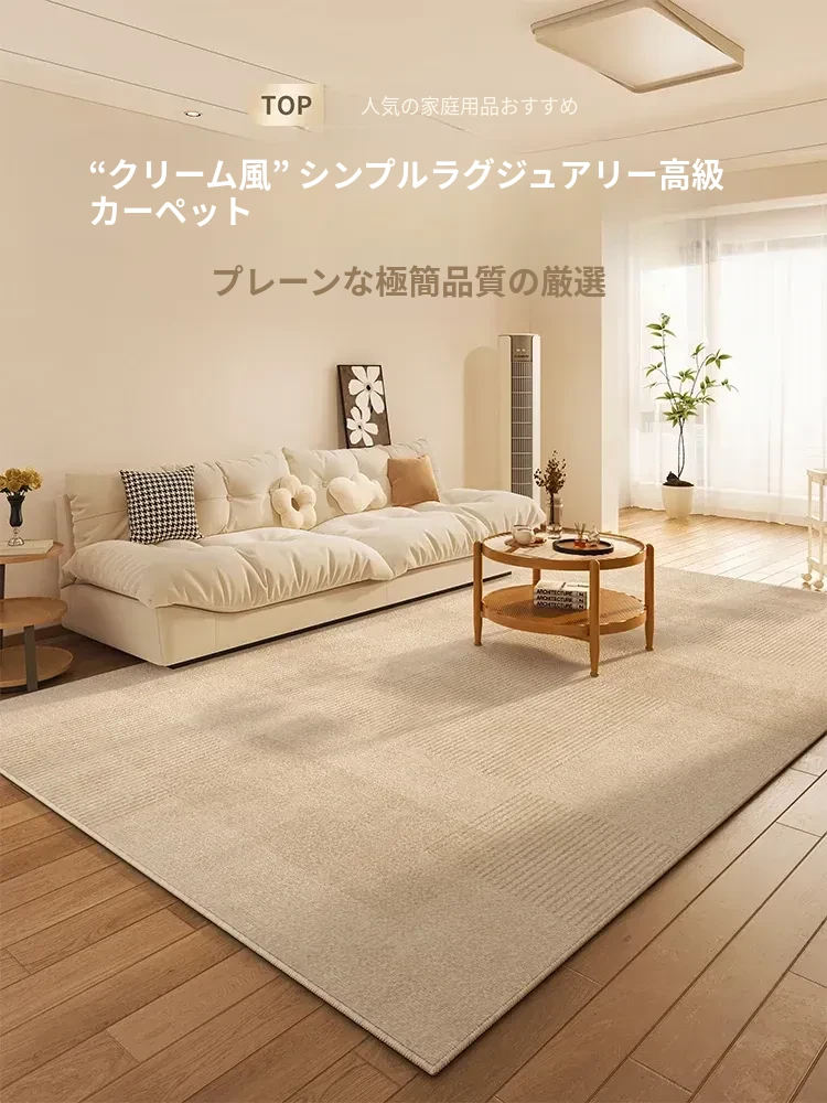 リビングルーム用クリーム風カーペット2025年新作!手洗い不要で、お手入れ簡単。ソファやテーブルにぴったりな大判サイズ、まるでカシミヤのような優雅さを持つ軽やかでラグジュアリーなデザインです!