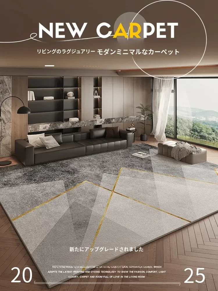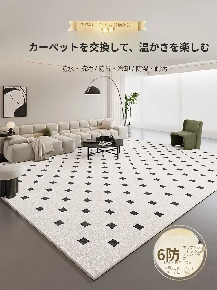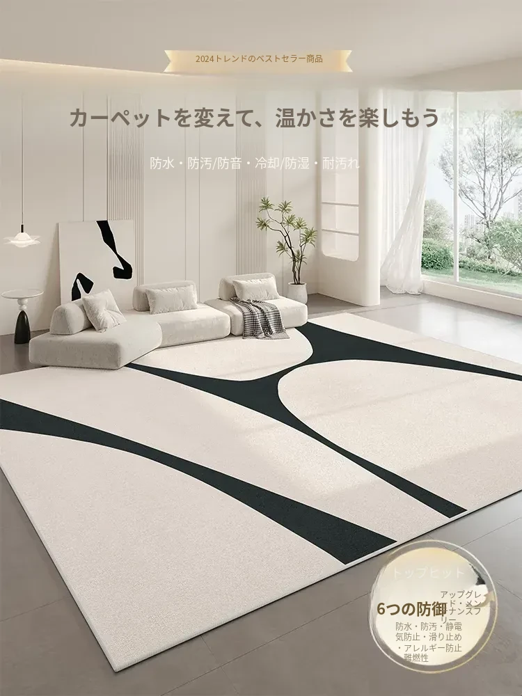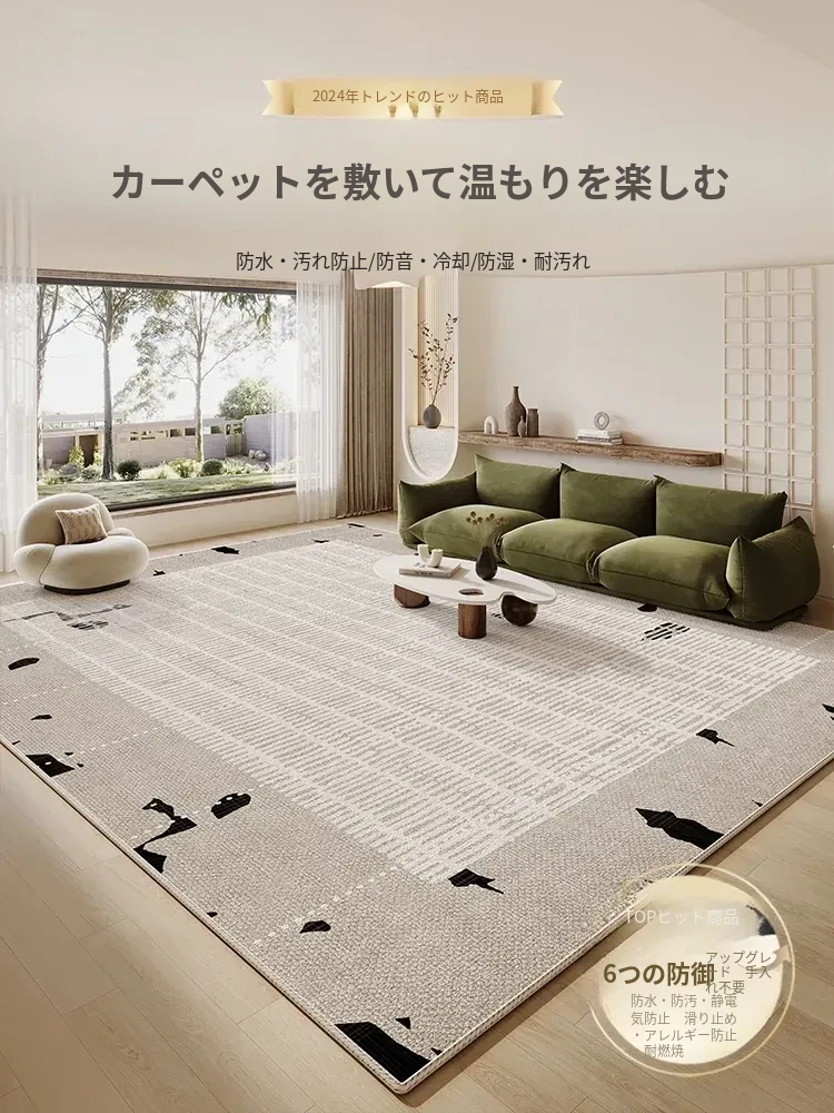 2025年新作!高級感あふれるリビング&寝室用防水デザインの大面積フルカバーラグ。洗濯不要でお手入れ簡単、スタイリッシュな空間を演出します!