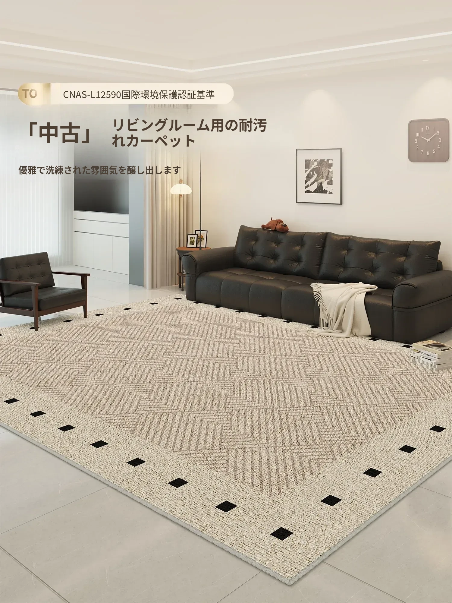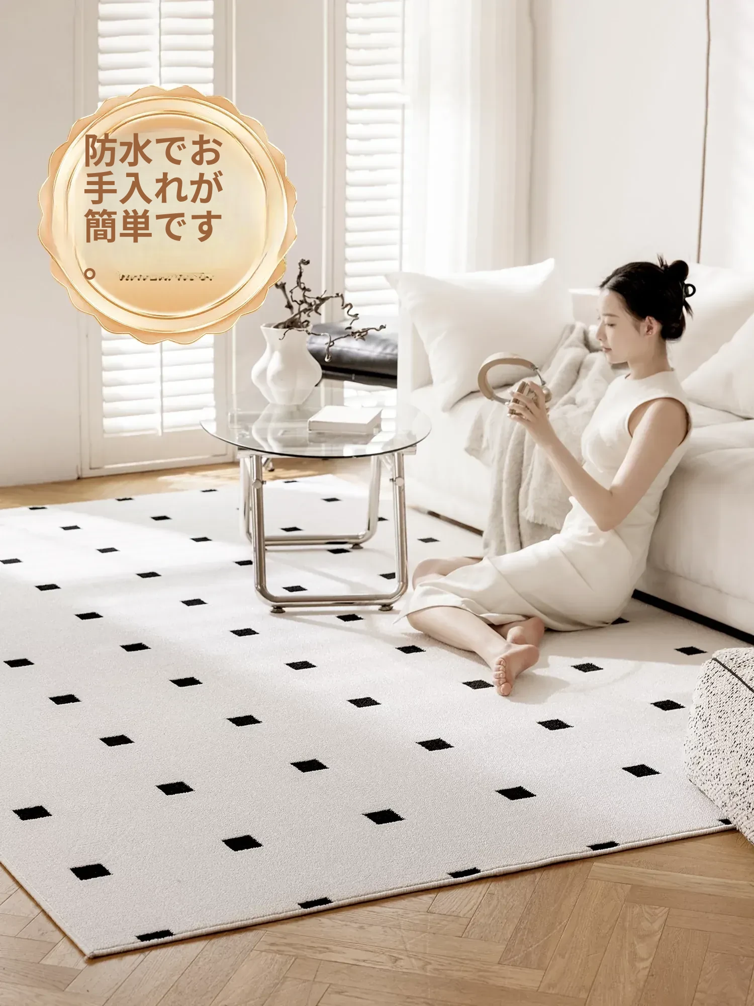 2025年新作!防水・防汚のシンプルラグ - 高級感あふれるリビング用カーペット、ソファやコーヒーテーブルにぴったり!快適な居住空間を演出します。