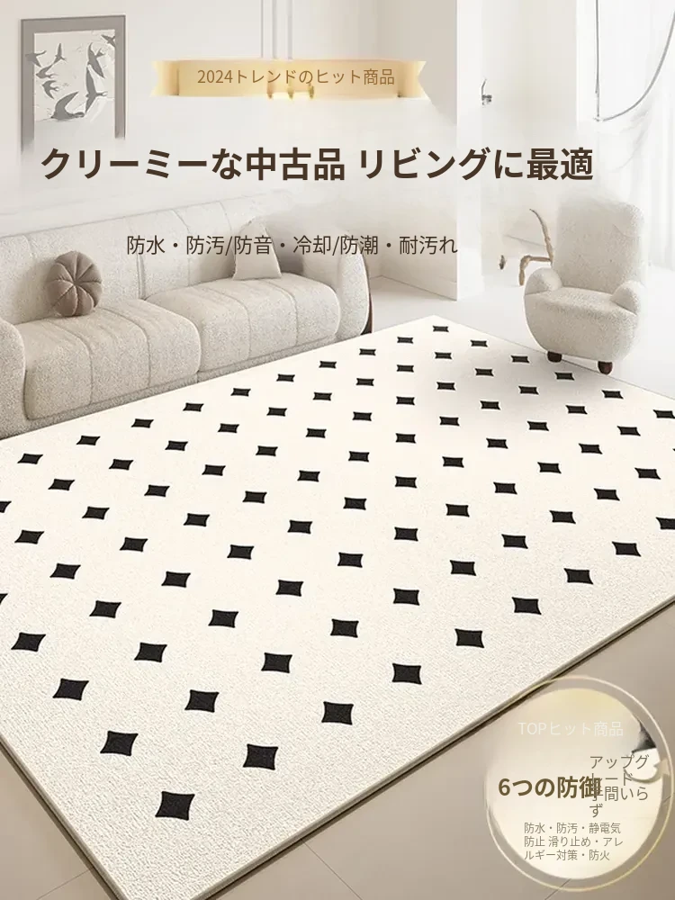 2025年新作!防水・防汚のクリーム風ラグマット - おしゃれなリビングにぴったり!ソファやテーブルの下にも最適なデザインで、快適さと美しさを両立。