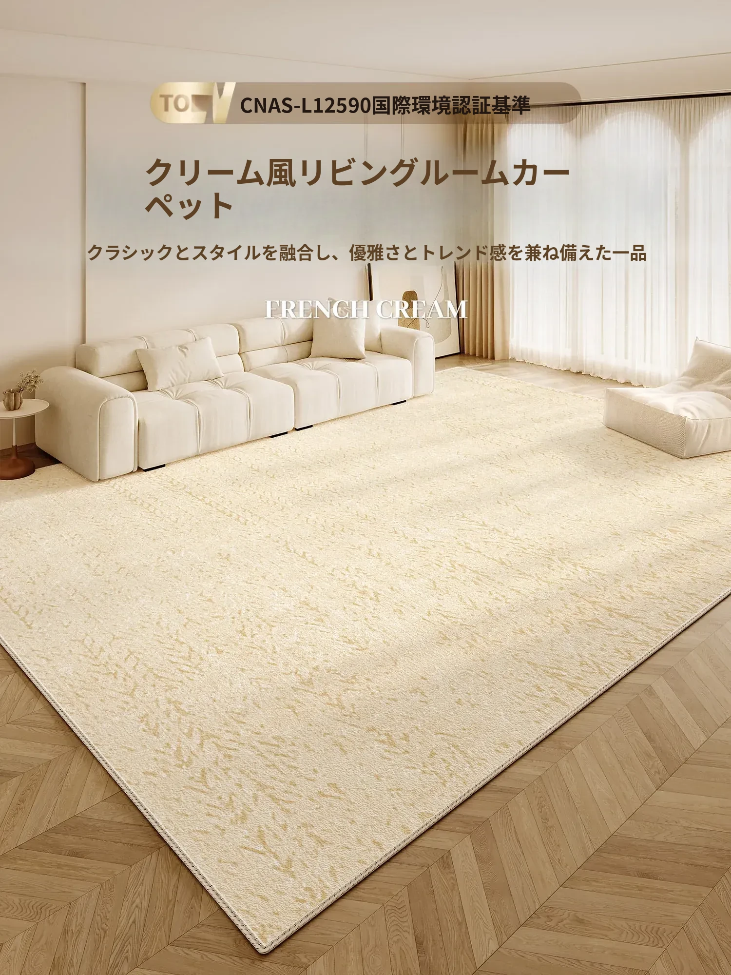 クリーム風リビングルームカーペット、上質でラグジュアリーな2025年新作。ソファやテーブルにぴったりな防水・防汚機能付き、家庭用に最適なルームカーペット。快適さとスタイルを両立!