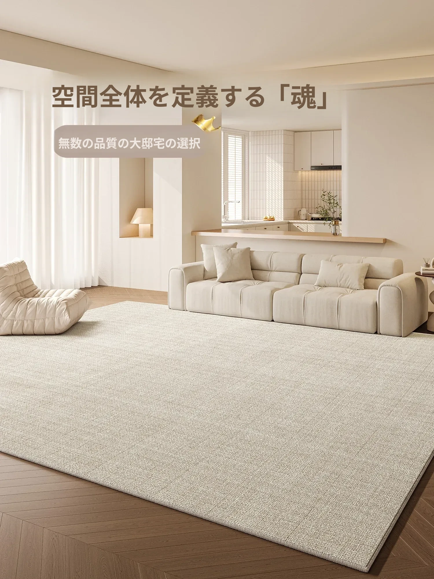 2025年新款 高級感溢れるリビング用カーペット 淡いクリーム色の全敷き防滑マット 防水・防汚ソファカバーでお部屋を華やかに演出!