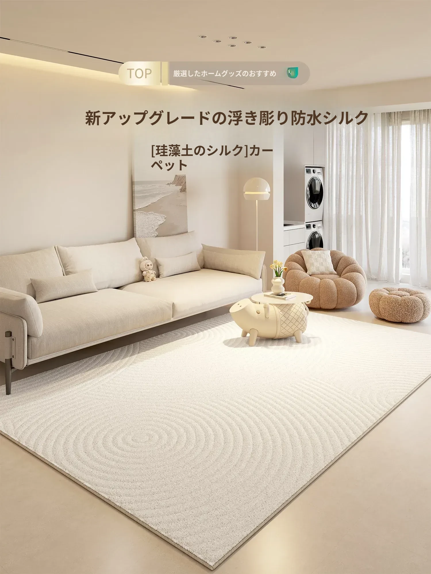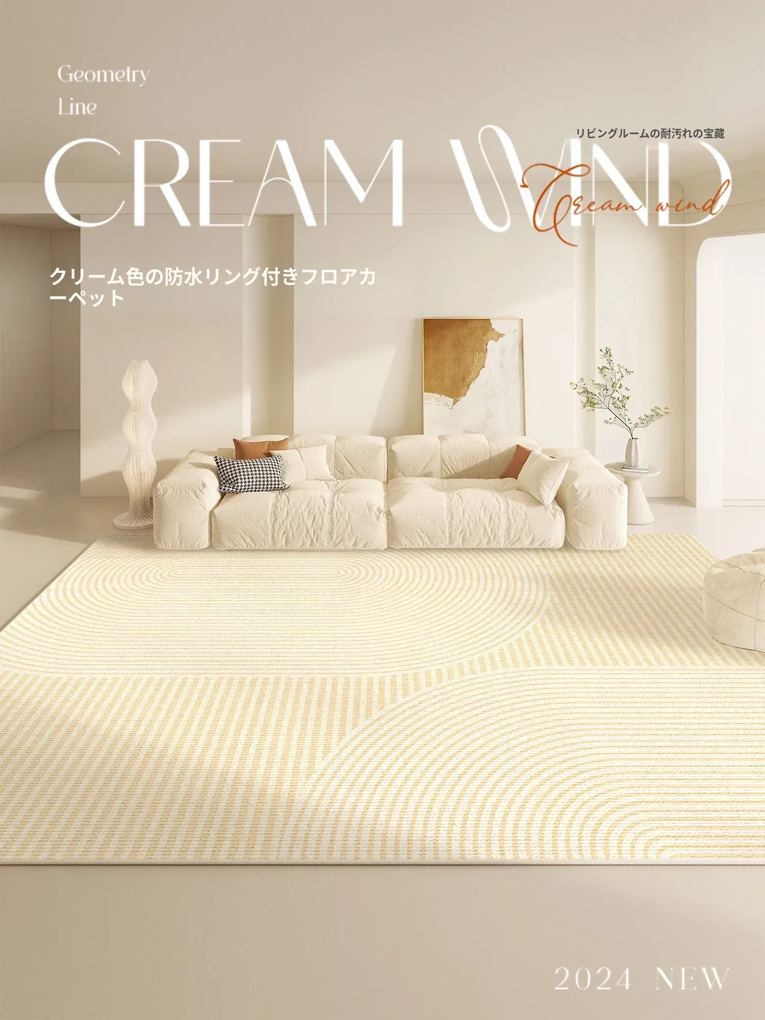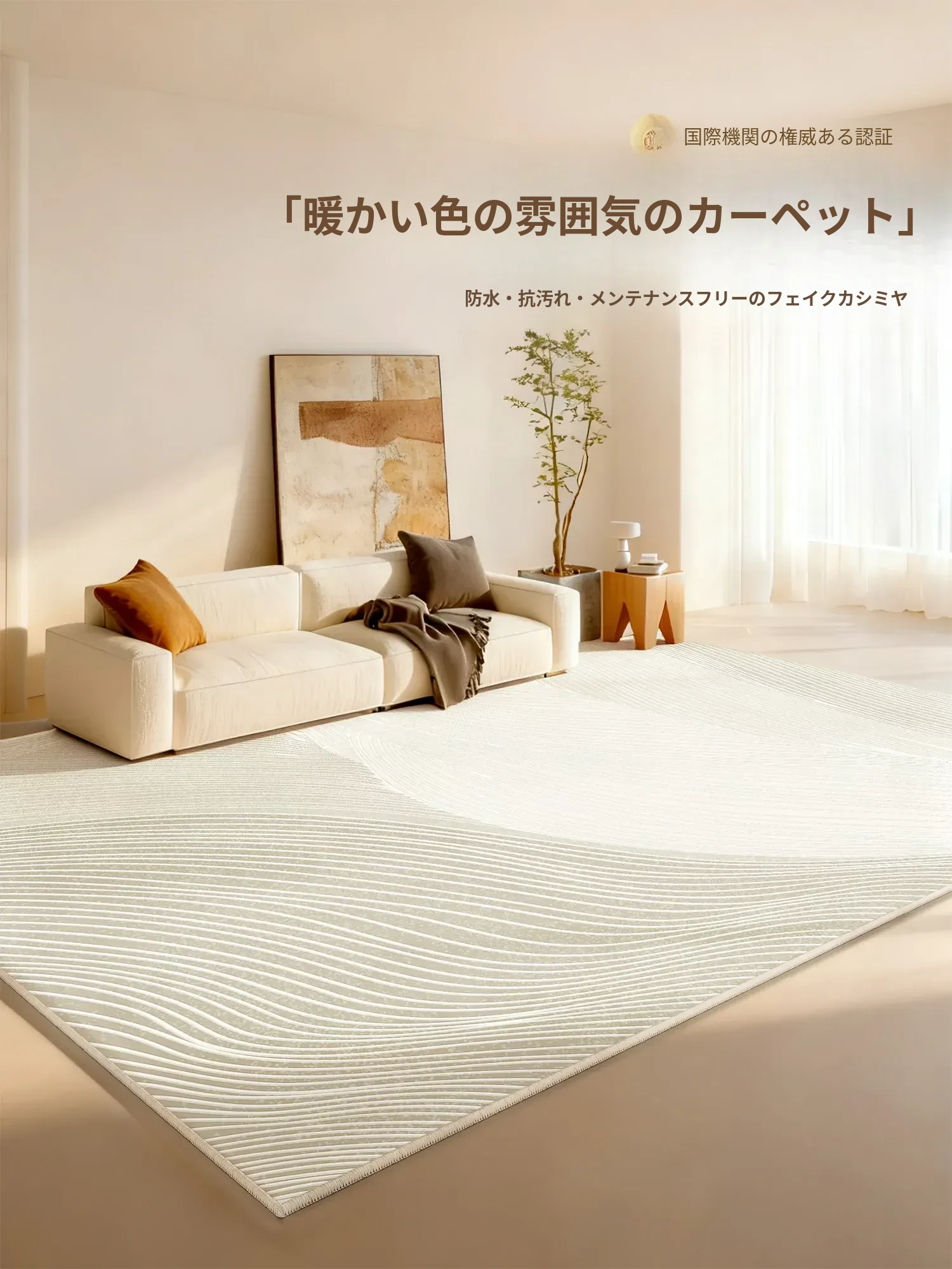 防水・汚れ防止!2025年新作クリーム風デザインのリビング・寝室用カーペット、手間いらずでお手入れ簡単。高級感溢れる軽やかさを実現したおしゃれなカーペット!