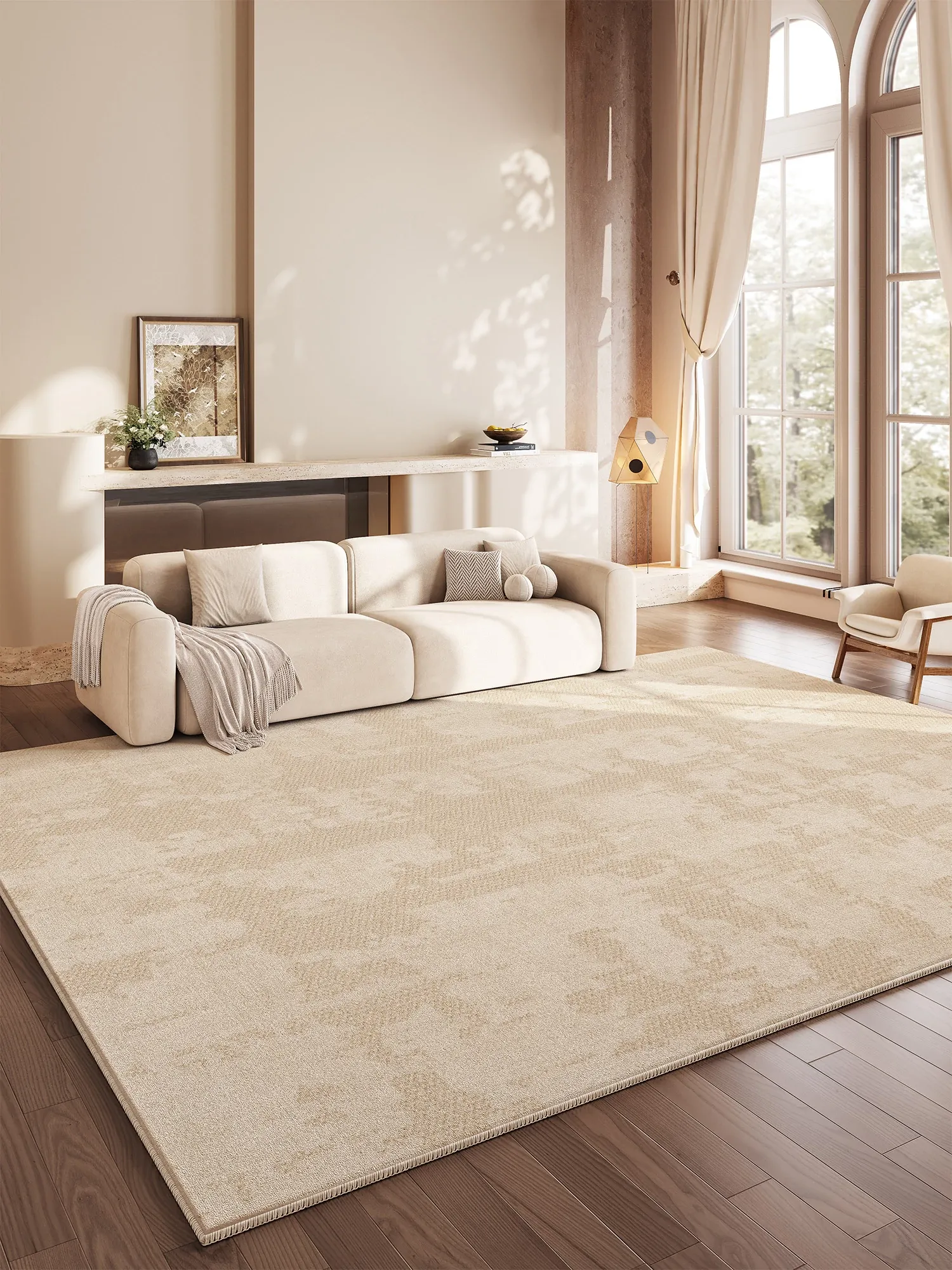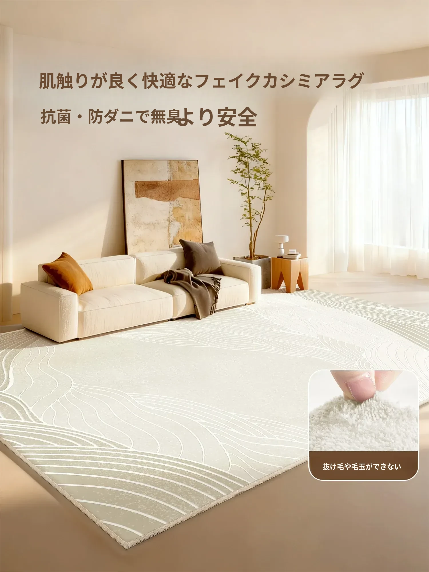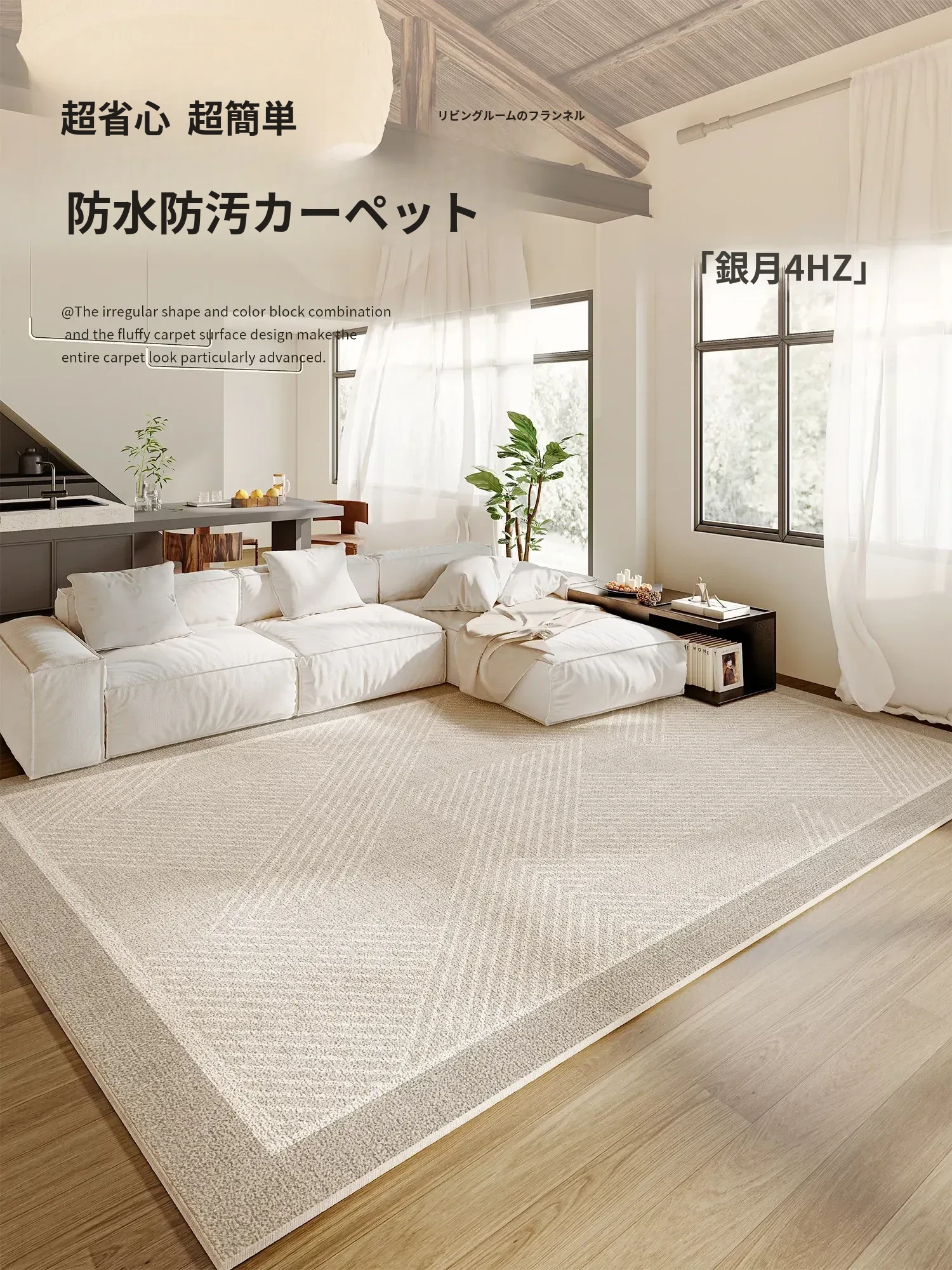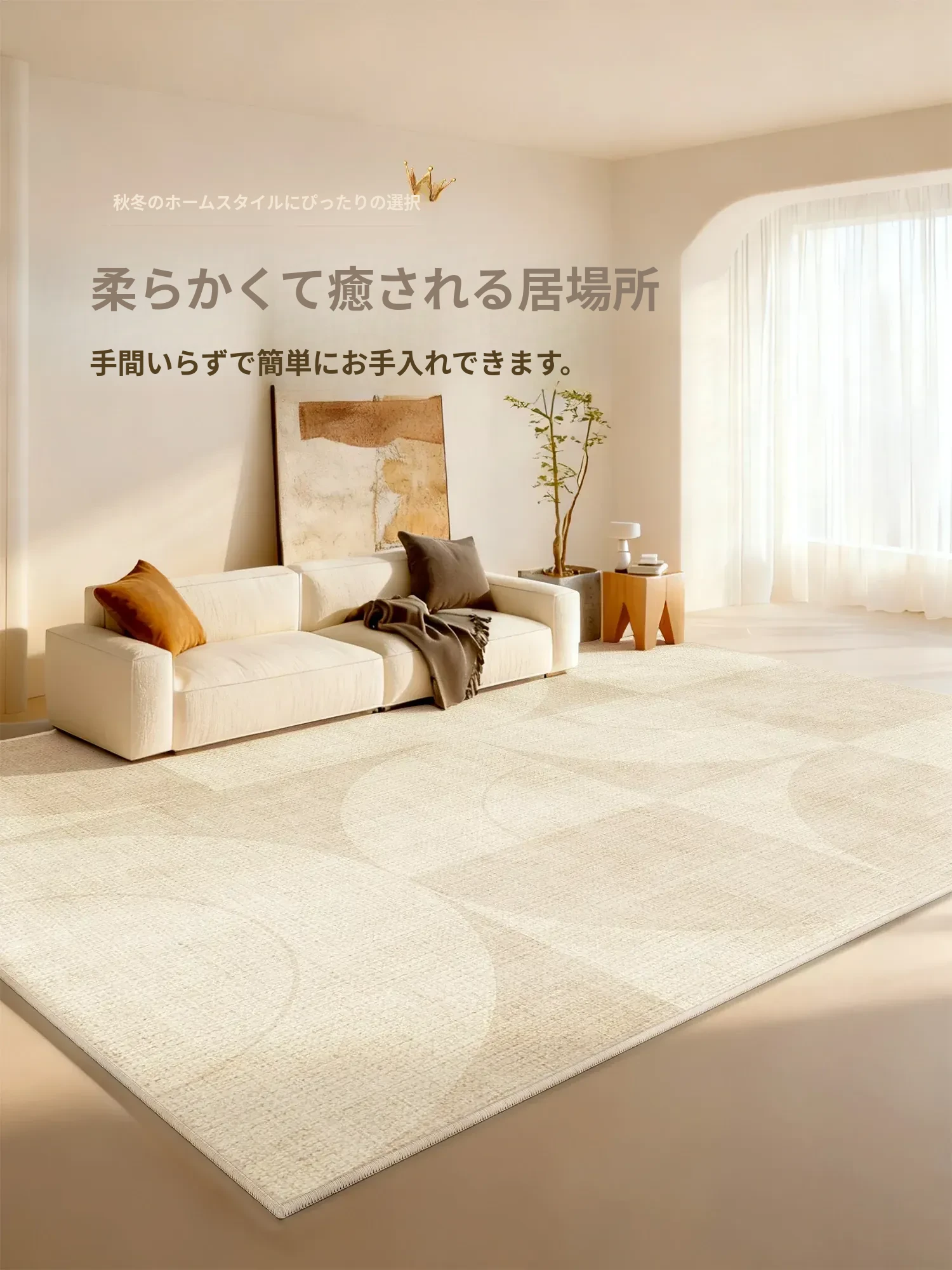 防水・汚れ防止!2025年新作クリーム風デザインのリビング・寝室用カーペット、手間いらずでお手入れ簡単。高級感溢れる軽やかさを実現したおしゃれなカーペット!
