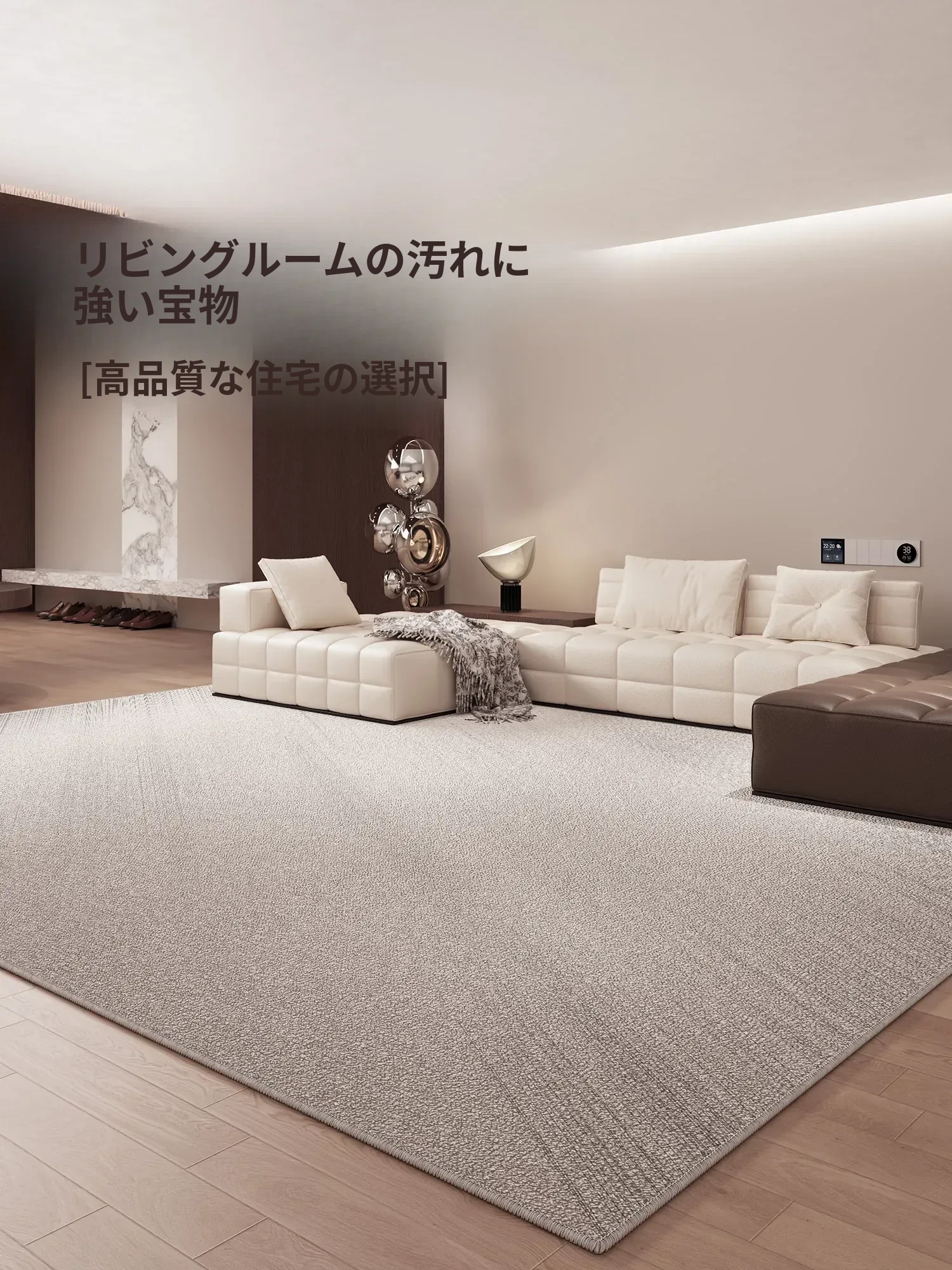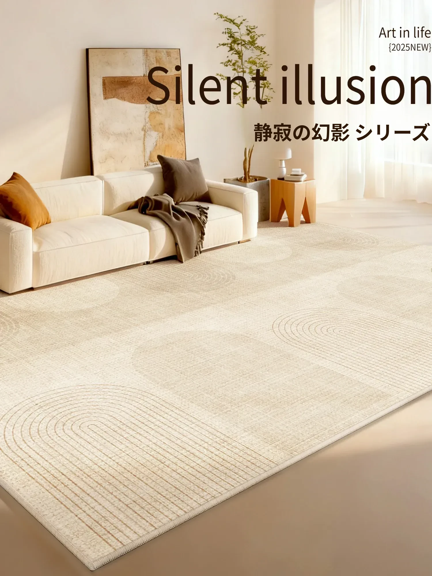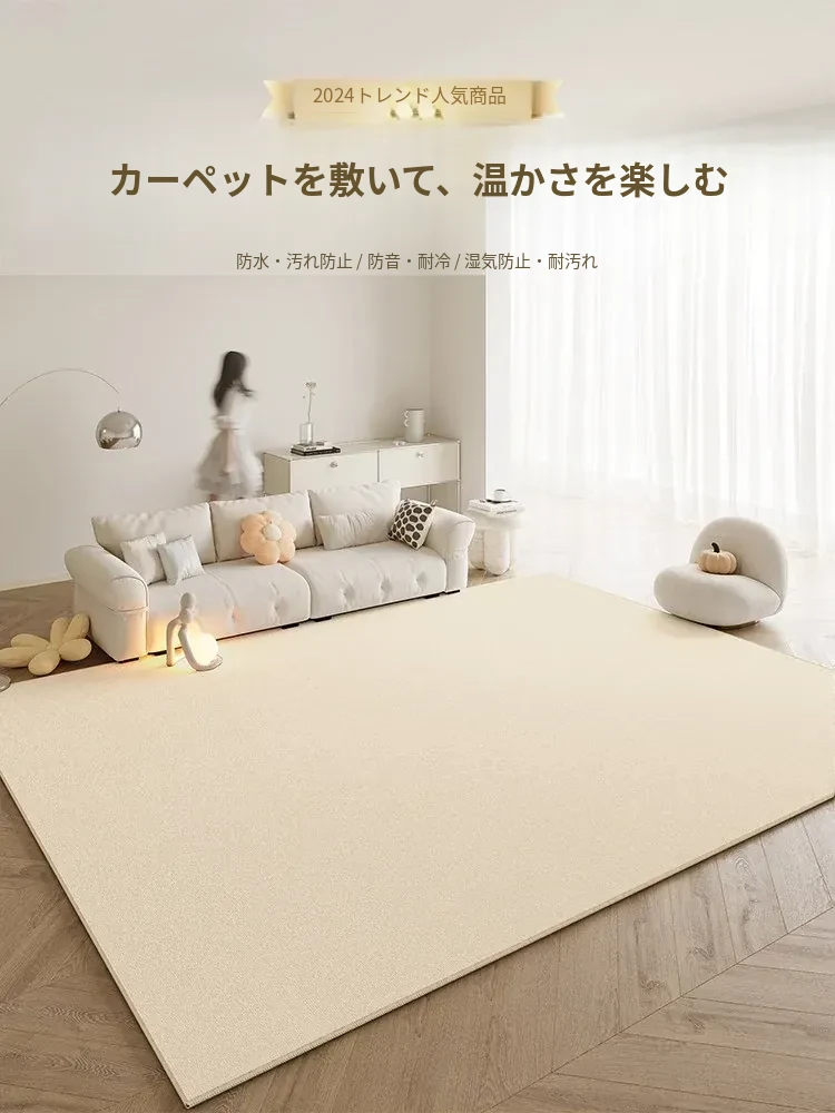 2025年新作!淡奶油風のリビングカーペット、シリカゲル製でお手入れ簡単!広い面積をカバーする防水・防音マットで、快適な空間を実現。